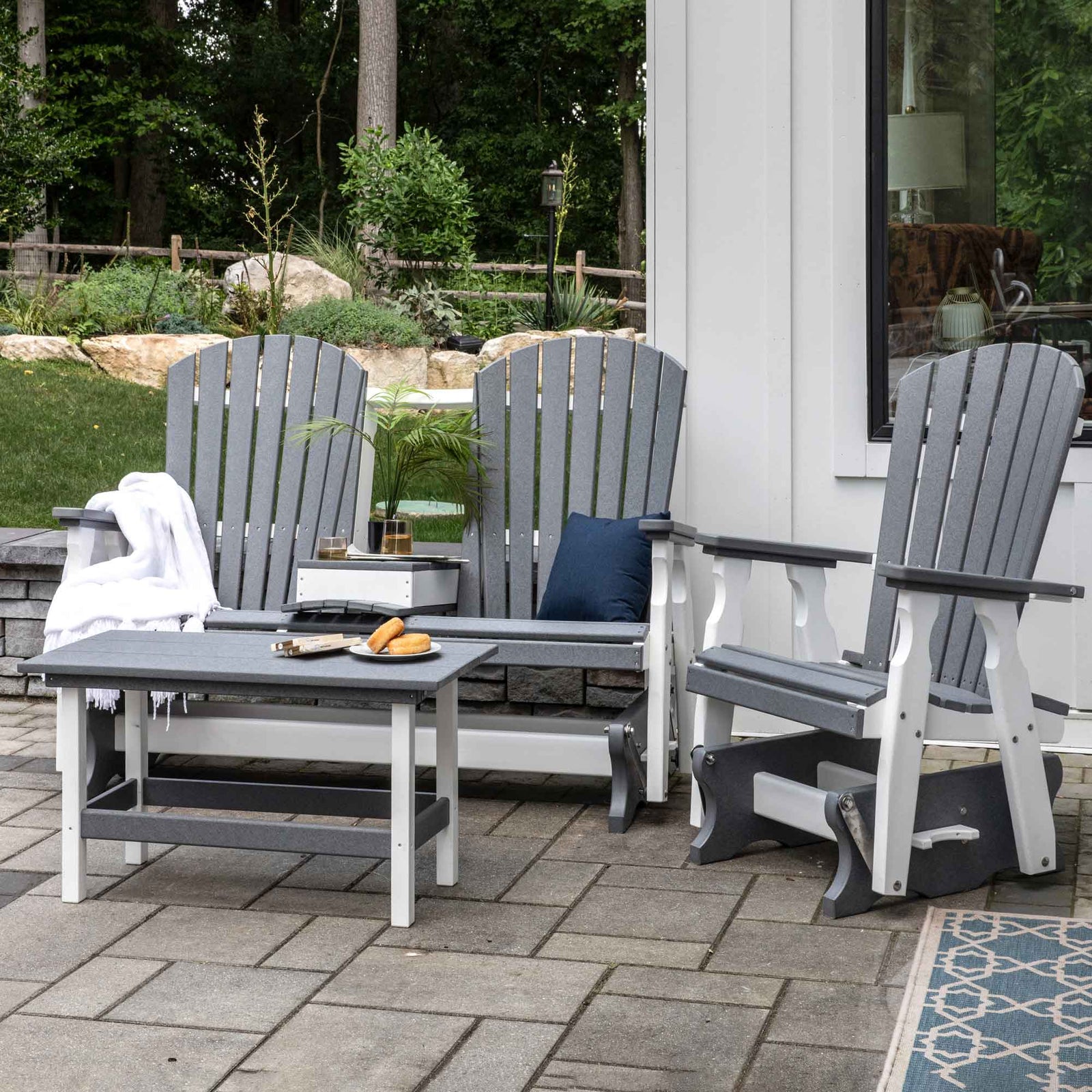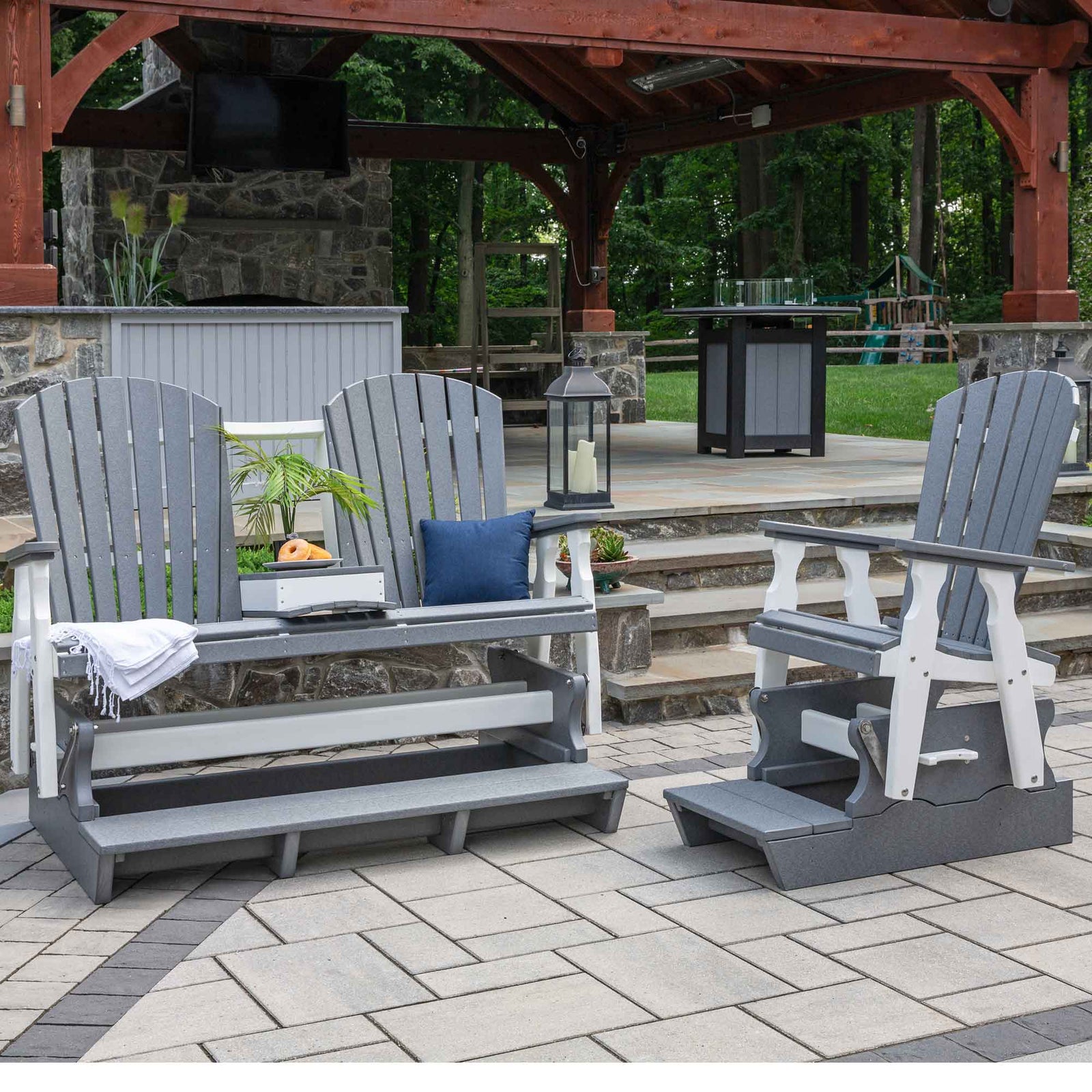 Adirondack Glider Chairs - Enhance your outdoor living space with our premium Adirondack glider chairs. Handcrafted in the USA by skilled Amish craftspeople using sustainable poly lumber, these gliders combine classic design with exceptional durability. Backed by a 20-year warranty, they offer years of comfortable gliding and relaxation on your