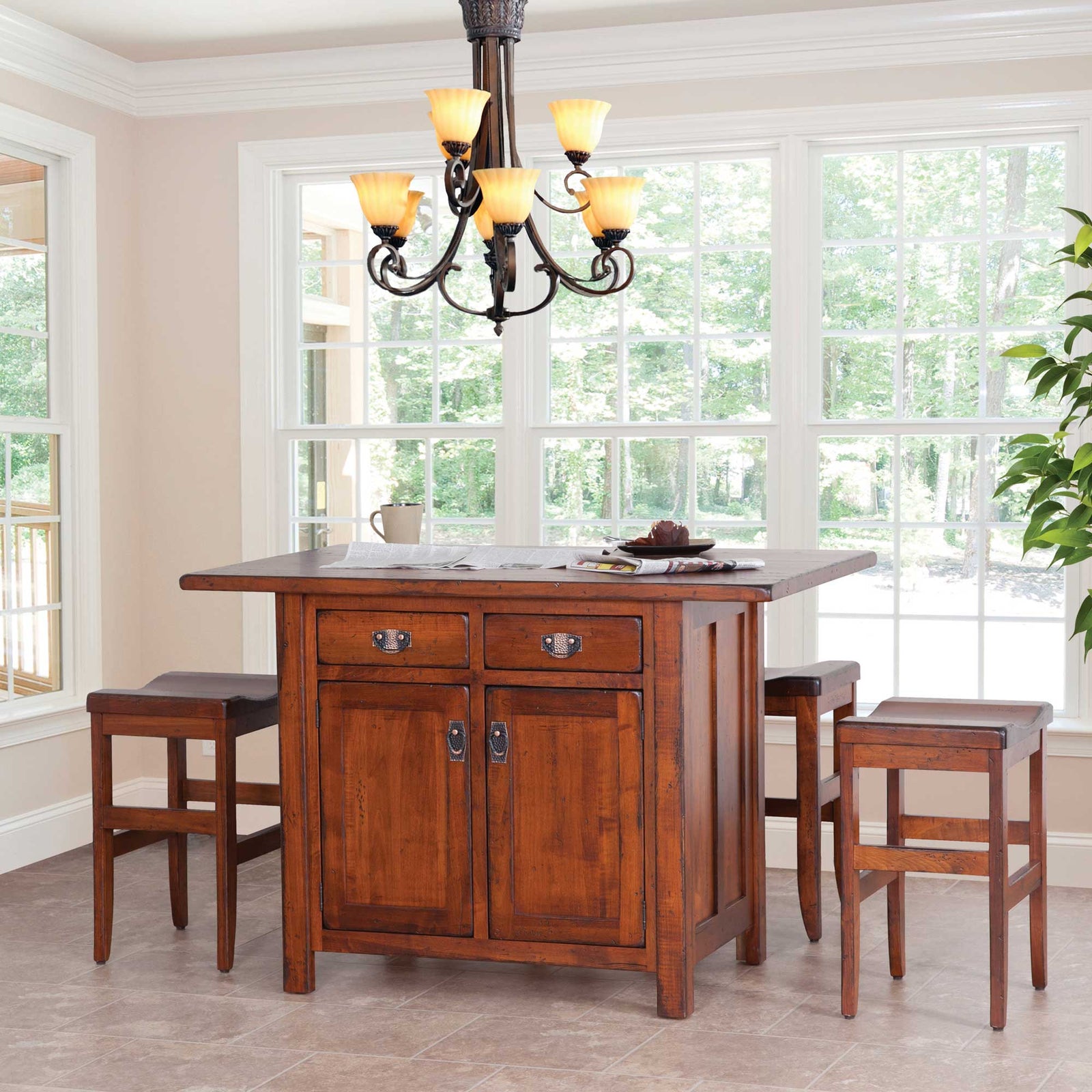 Amish Ancient Mission Butcher Block Top Dining Set -