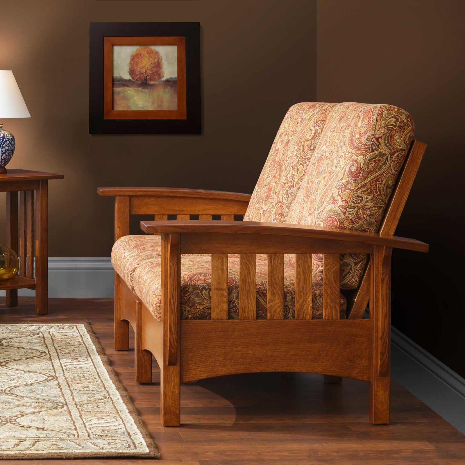 Amish Classic Mission Living Room Furniture - The Amish Classic Mission Living Room Furniture has wide slats, a design that rings even truer to the style that has defined mission furniture for decades, and the result is a mission piece that breathes ruggedness and strength. Tables feature heavier legs and 1” thick tops, sending a message that they are here to stay.