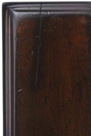 Antiquated Rich Tobacco on Maple | Stain Samples | Amish Furniture from Lancaster PA - Antiquated Rich Tobacco on Brown Maple. Extra nicks and holes, filed edges, simulated cracks, and heavy glazing. Rustic Brown Maple. Unique irregularities such as knots and other small imperfections. Open knots are filled with black epoxy unless otherwise specified. Features Standard Distressing on the back of the Samp