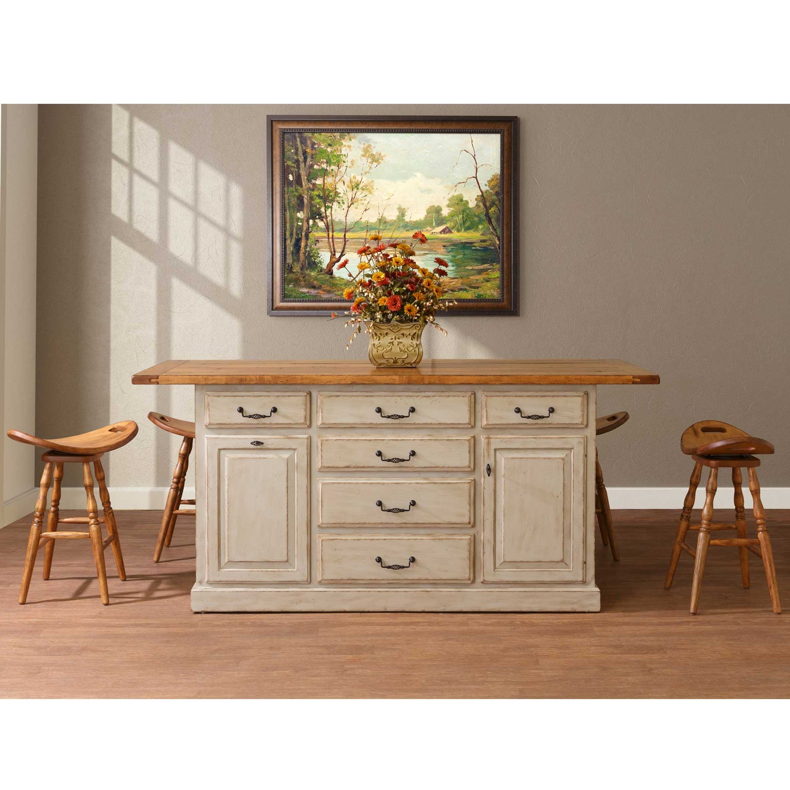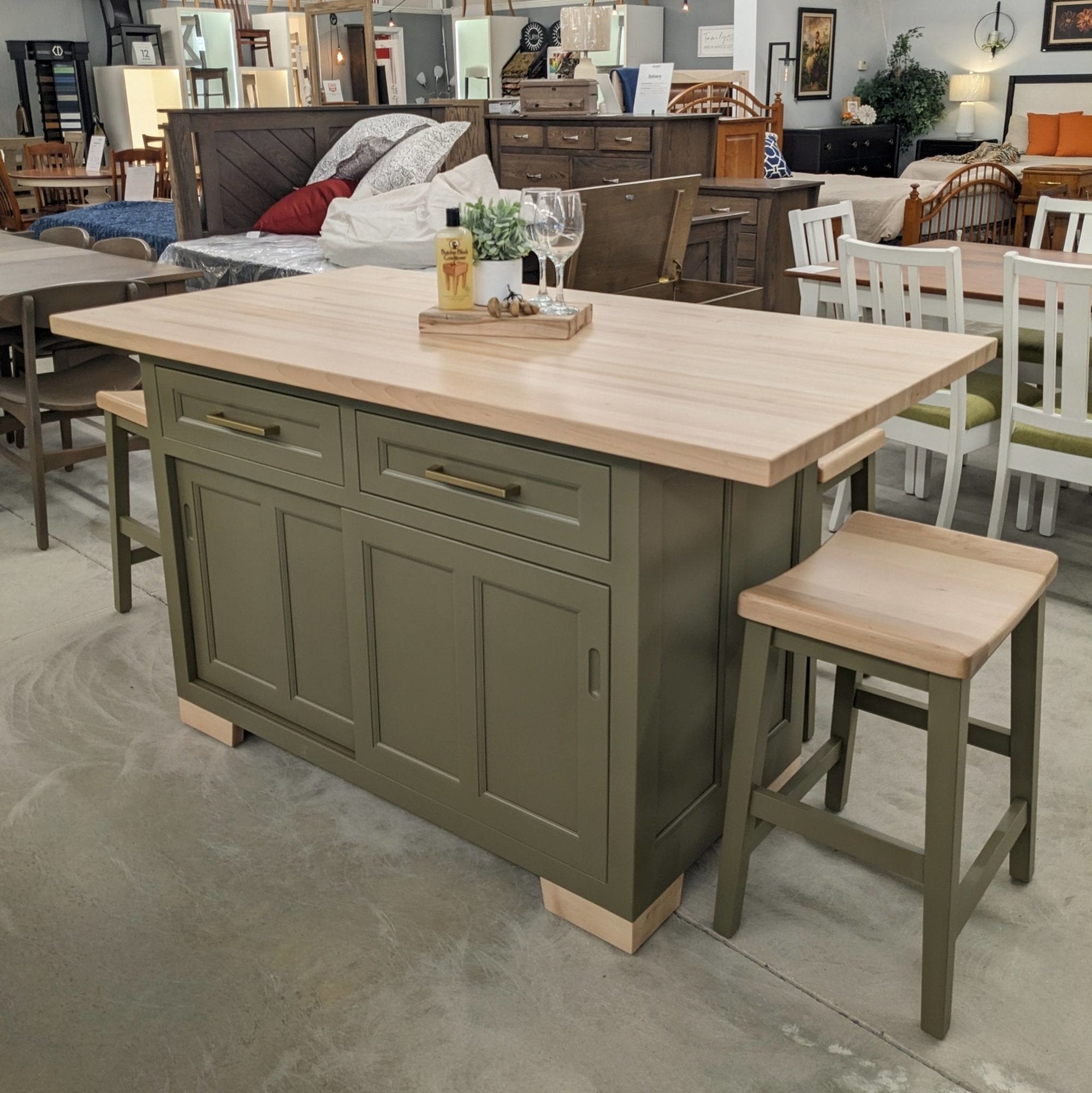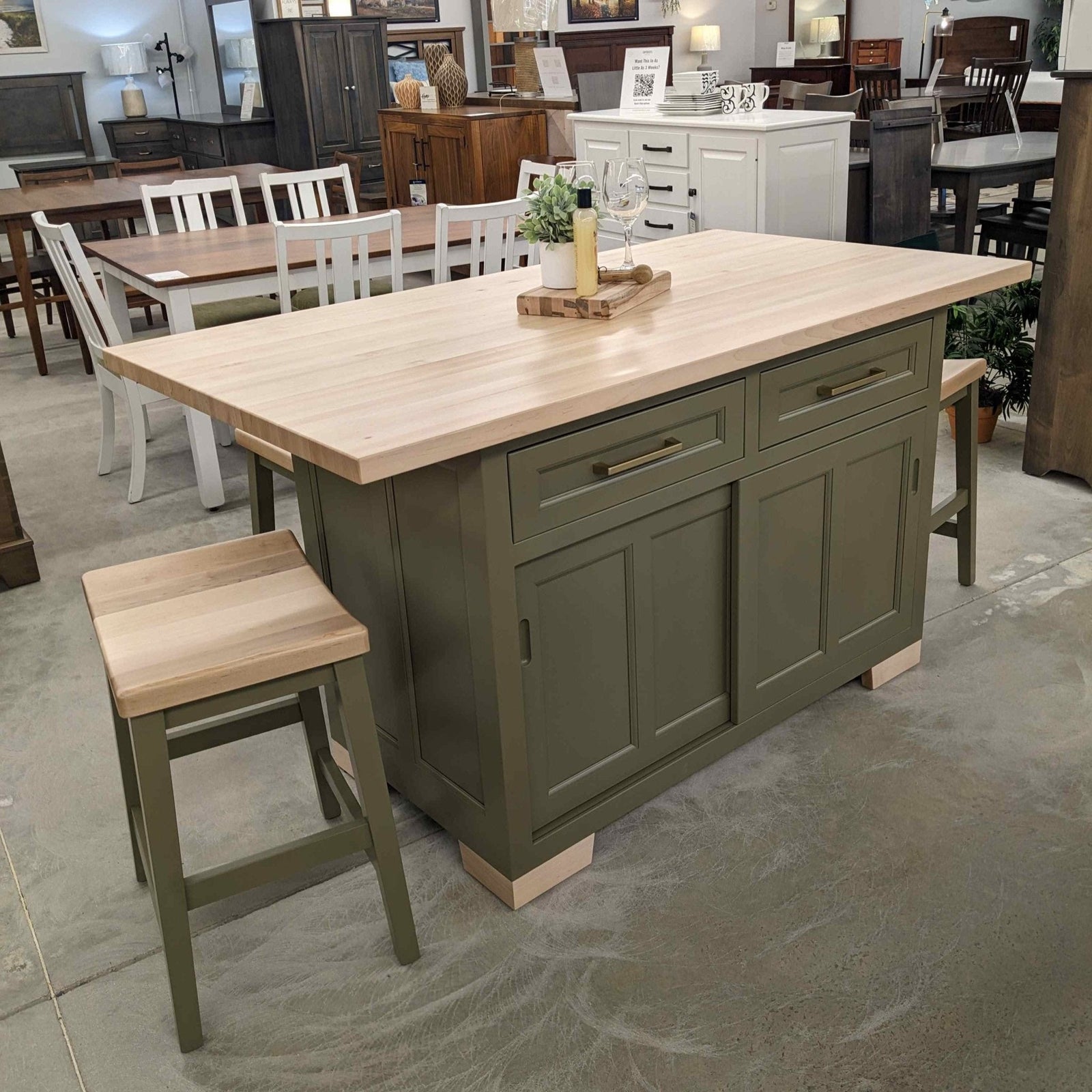 Solid wood kitchen islands and bars provide extra prep space and a natural gathering spot in your home. Pair them with Amish-made stools in counter or bar height for a complete look that balances function and style. Whether slat back, upholstered, or backless, our stools are handcrafted to match your table or island.