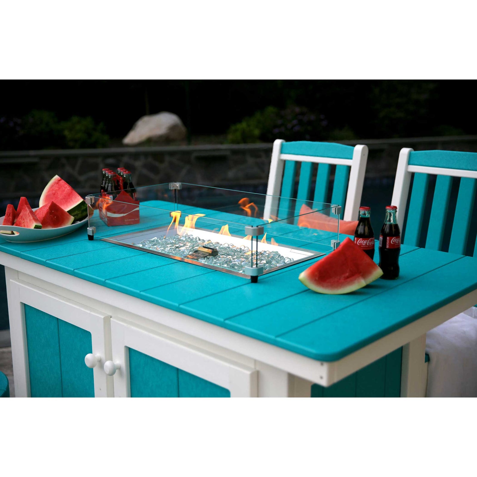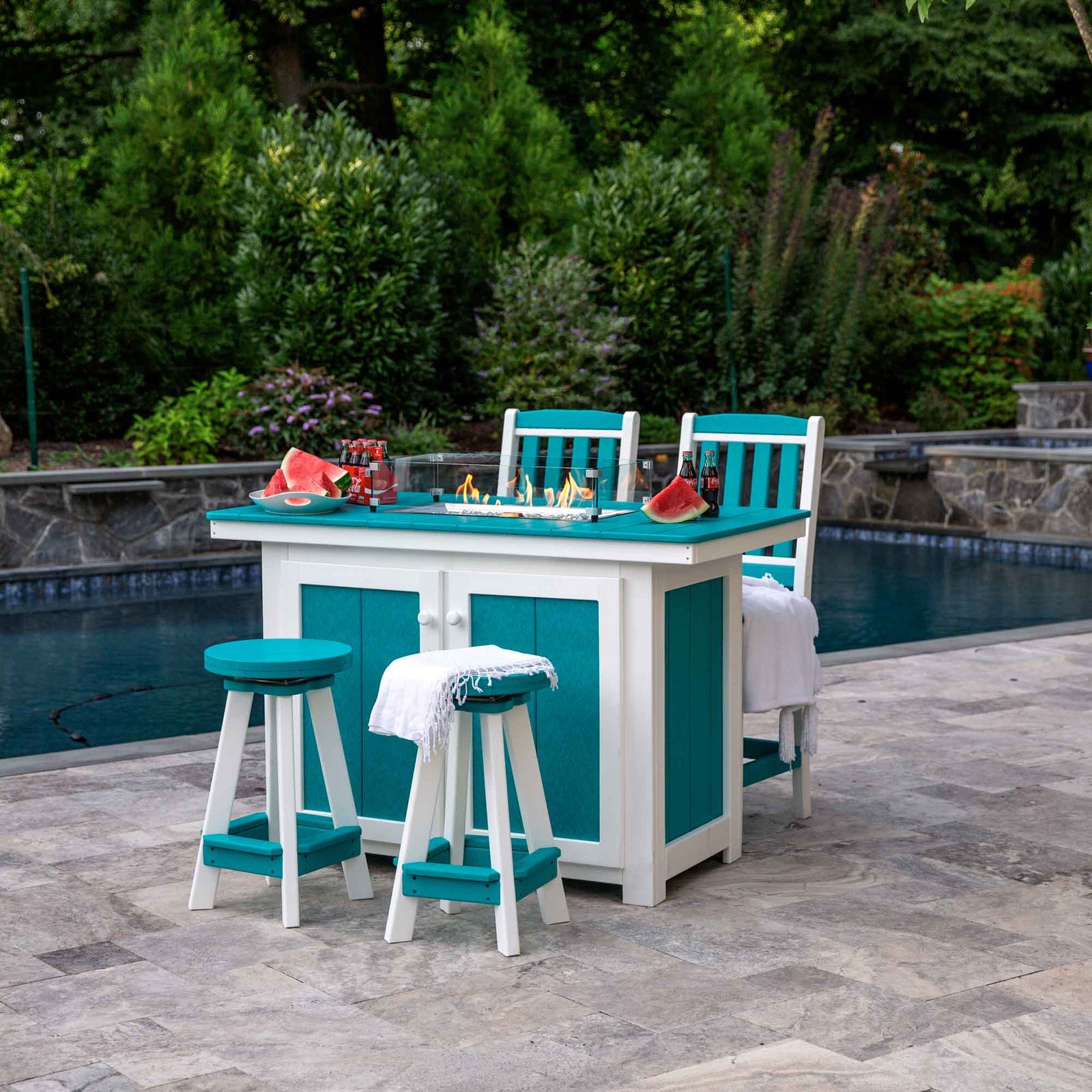 Get ready to party the summer away! This Amish made poly fire table with a set of barstools on your patio is the perfect fit to serve the drinks when the party is at your place. Make a statement with your pool patio furniture.