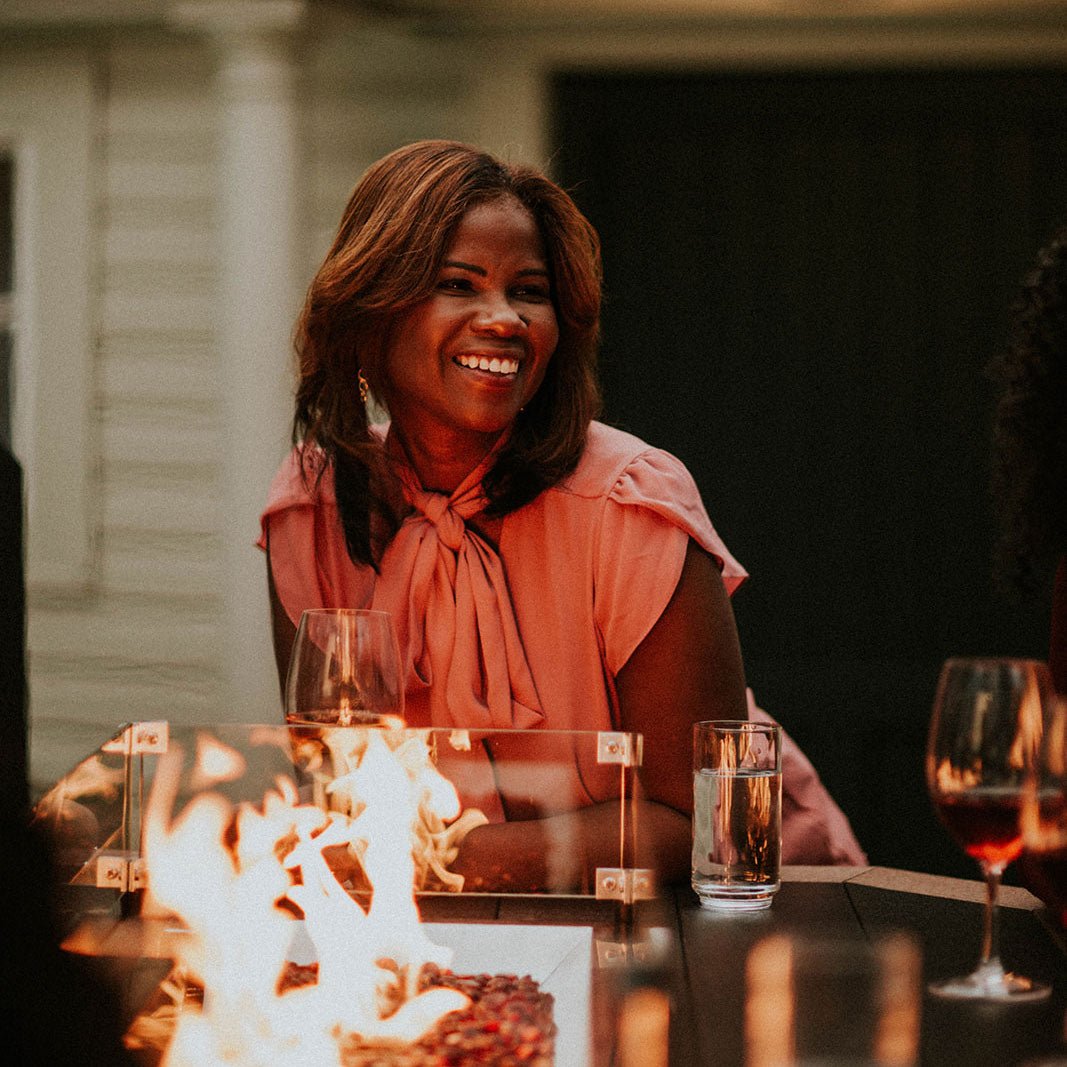 Fire tables are the hottest trend in outdoor furnishings. These uniquely designed pieces of patio furniture help bring a cozy glow to your patio like nothing else can. Our handcrafted fire tables feature a ledge wide enough for a dining set letting you and your guests dine around the comforting glow of flames. We also offer a fire pit with a much larger fire area. A glass perimeter protects the flames from the wind. You can also control the flames with inconspicuous controls on the side.