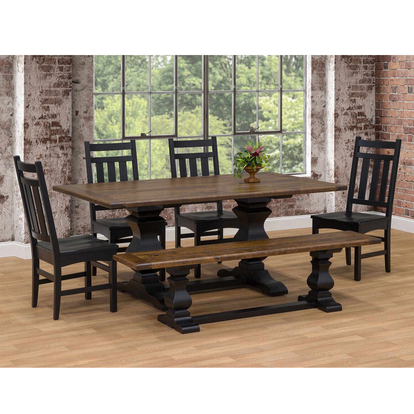 Amish Rustic Prairie Reclaimed Barnwood Farmhouse Dining Table & Chair Set