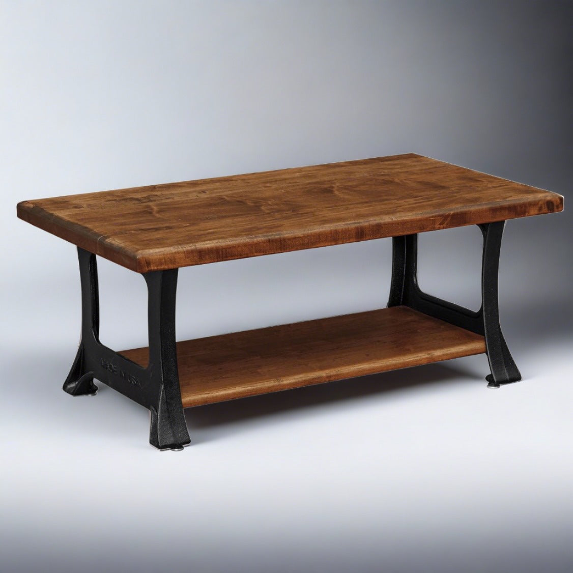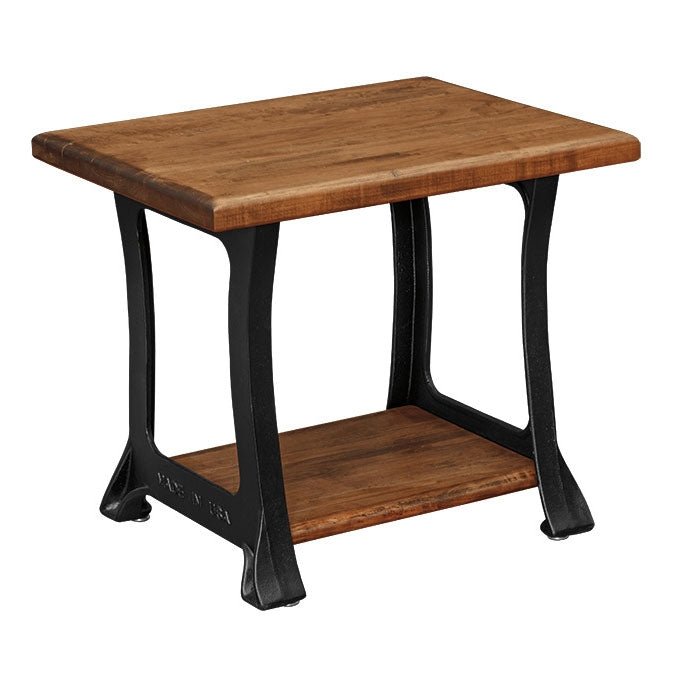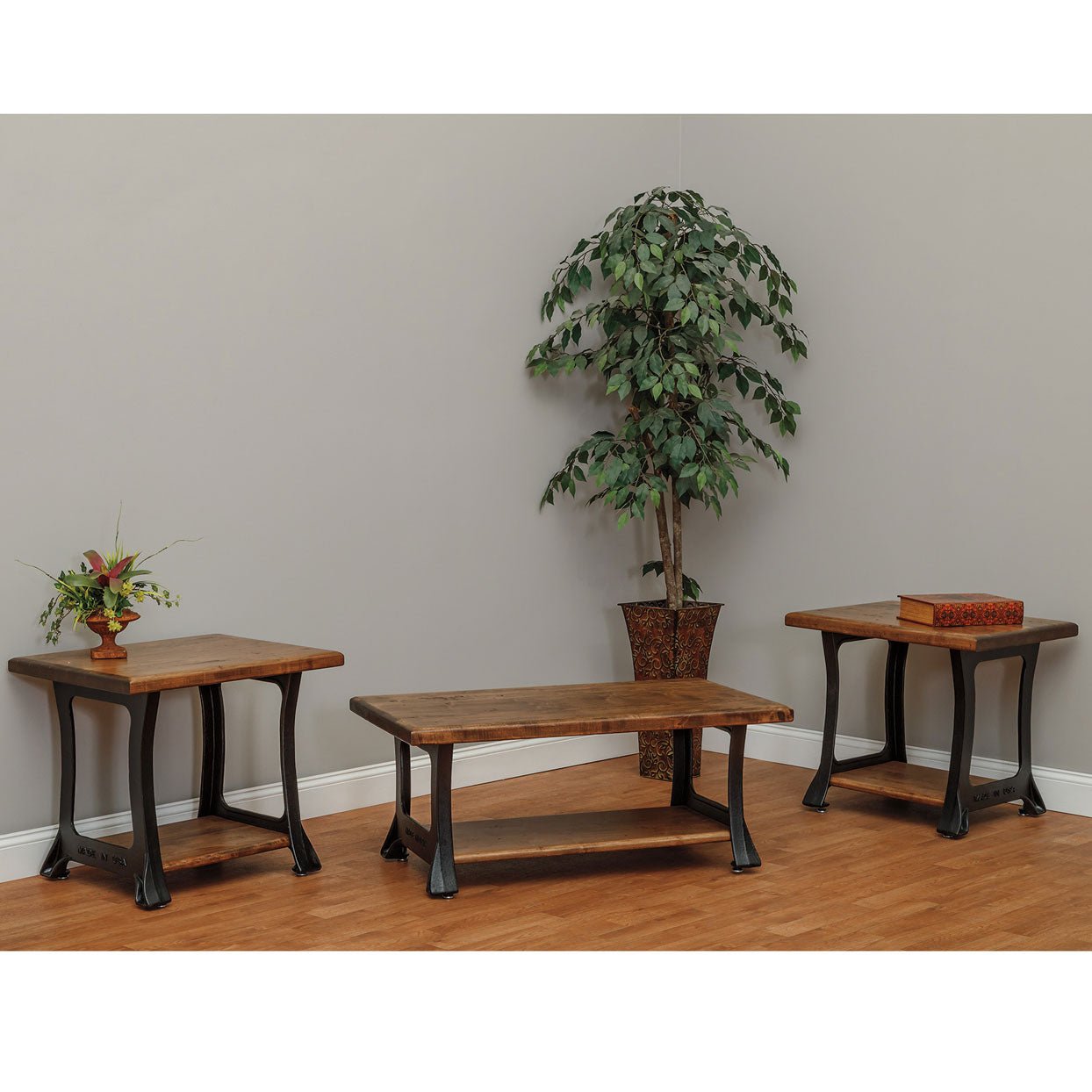 Amish Cast Iron Living Room Tables | Lancaster PA - This new collection of sturdy Amish made cast iron living end tables is perfect for any living room. Shown in wormy maple, but is available in oak, cherry, & maple. This line is Amish hand-crafted right here in Lancaster Pa.
