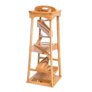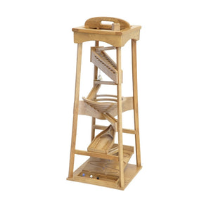 At just over 3-feet tall, our wooden marble pyramid is an obstacle course of fun and excitement! Marbles race down stairs, whirl, zag, and activate an array of surprises and simple machines. It’s a full sensory experience that kiddos will want to play again and again.