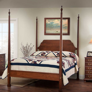 Amish Jamestown Colonial Pencil 4 Post Bed - This reproduction design is a classic colonial look. The bed breaks down easily (the posts are removable) so it will fit in more rooms. Available in Twin, Full, Queen, KingHandcrafted in Pennsylvania from choice hardwoods. Shown in Cherry - Black Cherry Stain. This bed is easily disassembled. Requires a box spring. Que