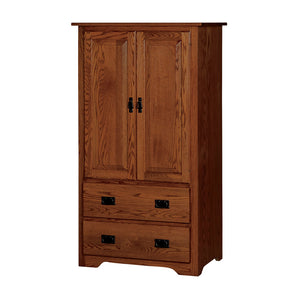 Mission Amish Solid Wood 2-Door Armoire - Mission Amish Solid Wood Armoire is Pictured in Oak with Harvest Stain with Black Mission Hardware. Clothing bar and Adjustable shelves behind the door.  Available in Oak, Maple, Cherry and Quartersawn Oak Your choice of stain or paint color(s). This item is customizable Shown in Oak - Harvest Stain - Mission Pull Dove