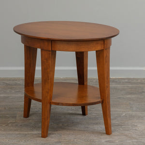 Stratos Amish Oval End Table - This new design from Lebanon Valleys is the perfect centerpiece for your living room. This end table is available in Maple or Cherry hardwood. Handcrafted individually in a small shop in the hills of Pennsylvania. Choose your stain color. Shown in Cherry with Heritage Legacy Finish.Click to View Finishes