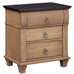 Amish Avignon 3-Drawer Bedside Chest - The Amish Avignon Bedside Chest is shown in Heritage Wicker & the Top in Heritage Briar. Hardware is the Standard Ring Pull. Handcrafted by Amish craftsman out of solid northeastern hardwoods. Features dovetailed drawers with self-closing slides.View StainsView Hardware