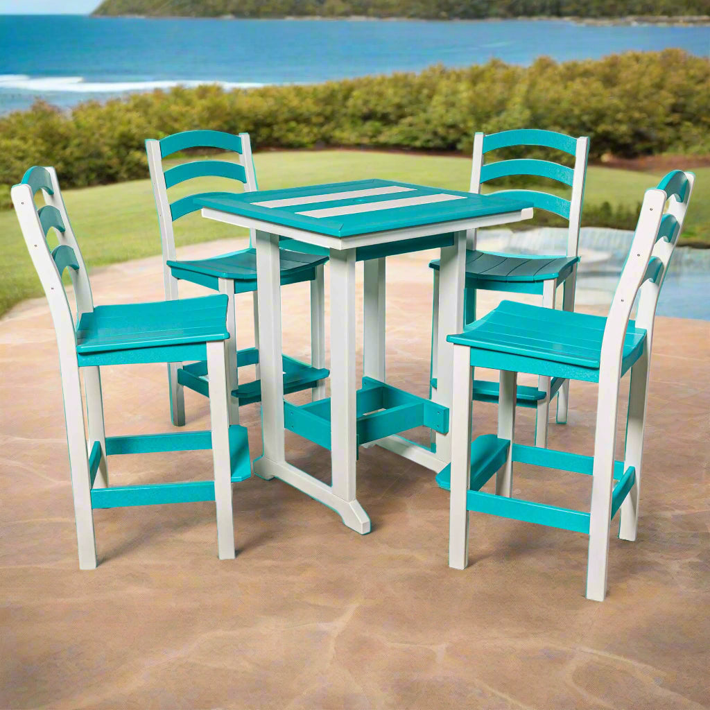 Amish Maui Surfboard Patio Poly Lumber 6' Bar Table & Stools for 2