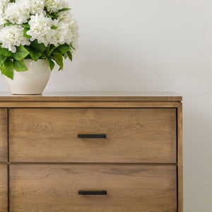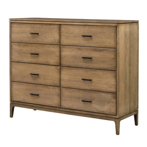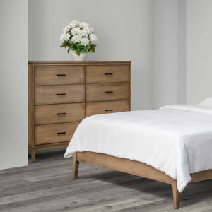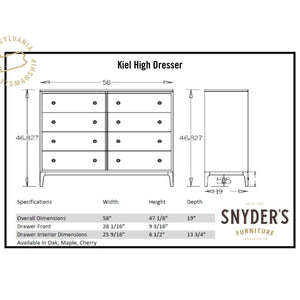 Amish Kiel Mid-Century Modern Solid Wood High Dresser - All new Kiel Amish bedroom furniture is hand made by the Amish right here in PA!  Where Its Made: Lebanon, PAWhat's Included: 1 High DresserShown in: Maple Wood w/ Vintage Flinton StainDimensions: 58"w x 19"d x 47 1/8"hDrawers: Dovetailed drawer boxes, soft close slidesFinish: Catalyzed Conversion VarnishShipping: Ship