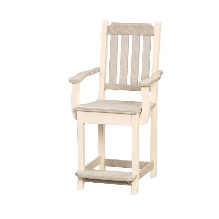 Amish Keystone Poly Patio Counter Chair - 24" seat for 35" Counter Table. Shown in Driftwood Grey & Ivory. Love your patio again. Enjoy the same comfort outside as you do in your living room with the Finch Keystone chair This chair is carefully constructed to provide you a lifetime of service. Fasteners are hidden for a more luxurious look, each piece is a