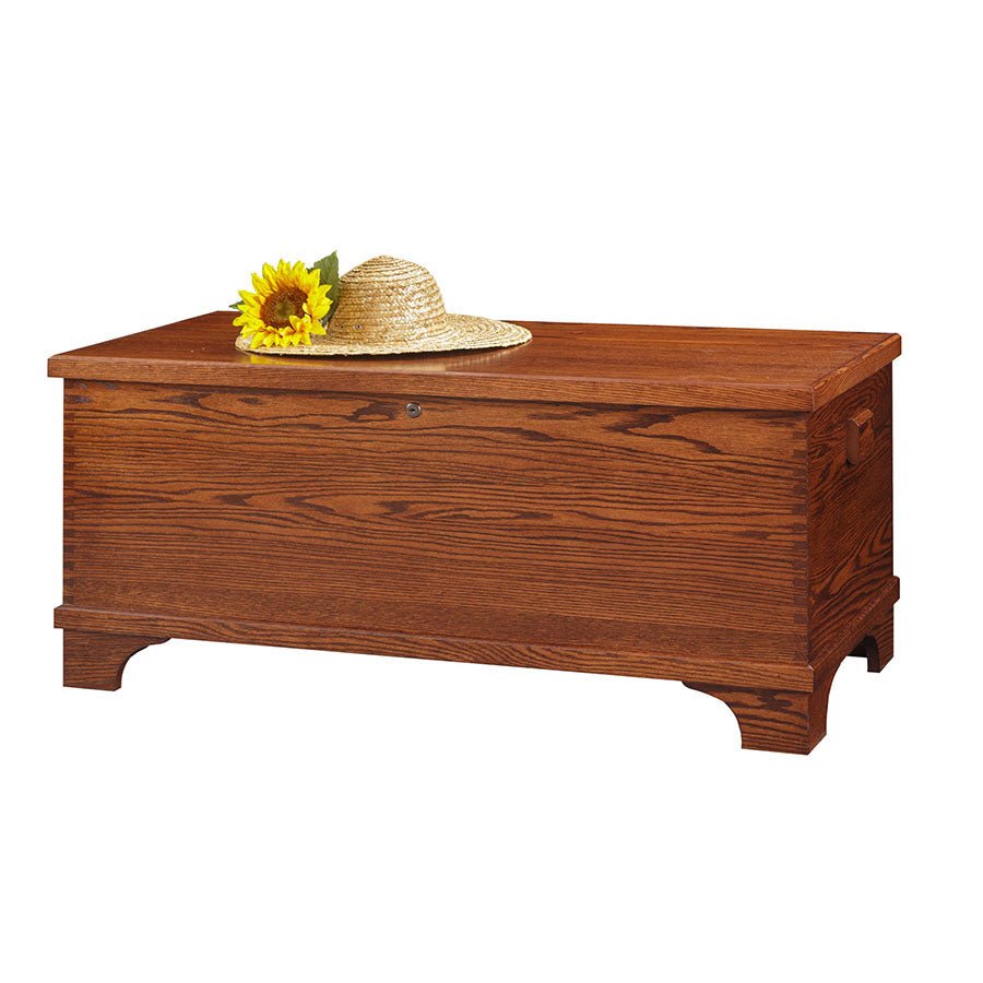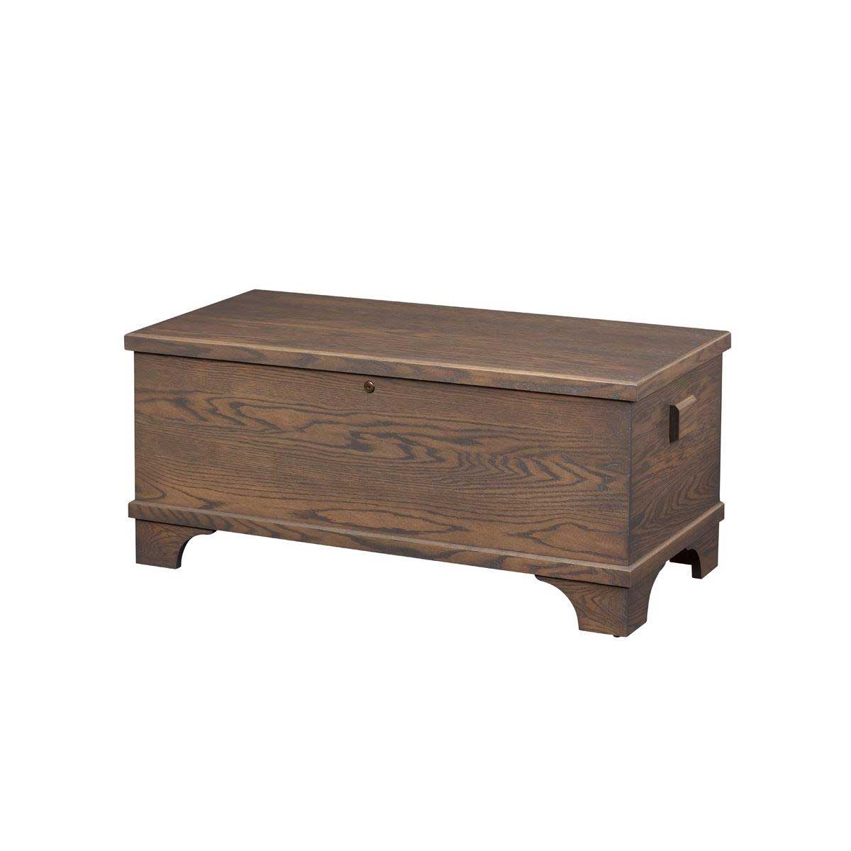 La serie Franklin del cofre de almacenamiento Amish Made presenta un diseño superior plano. Usando cedro aromático sólido con un acabado claro, su cofre será único con hermosas variaciones de color. Viene de serie con cerradura.