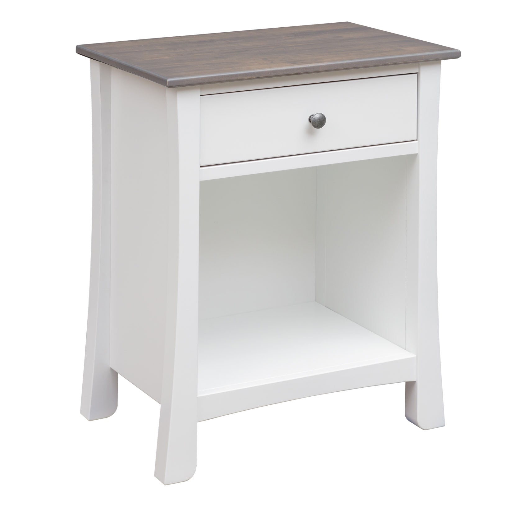 El juego de dormitorio New Transitions Amish Made es una incorporación reciente a nuestra oferta. Hecho a mano localmente con madera maciza. Cuenta con cajón de cierre automático con correderas ocultas. A menudo se muestra en cerezo natural o claro, pero también lo presentamos en arce gris para una apariencia más moderna.