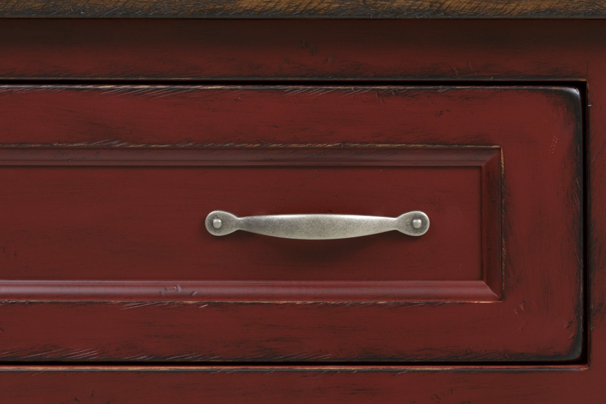 El juego de dormitorio Hudson: líneas modernas, proporciones industriales. Una mezcla de finura y fuerza. Las tapas gruesas y rugosas con aspecto de tablones con ranura en V son estándar, mientras que los pies y las piernas pesados hablan de cualidades de las que sólo están hechos los legados. Amish hecho a mano en el condado de Lancaster.