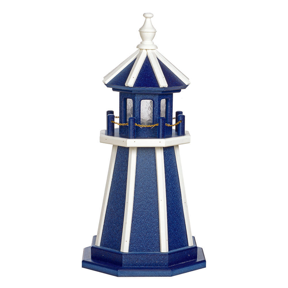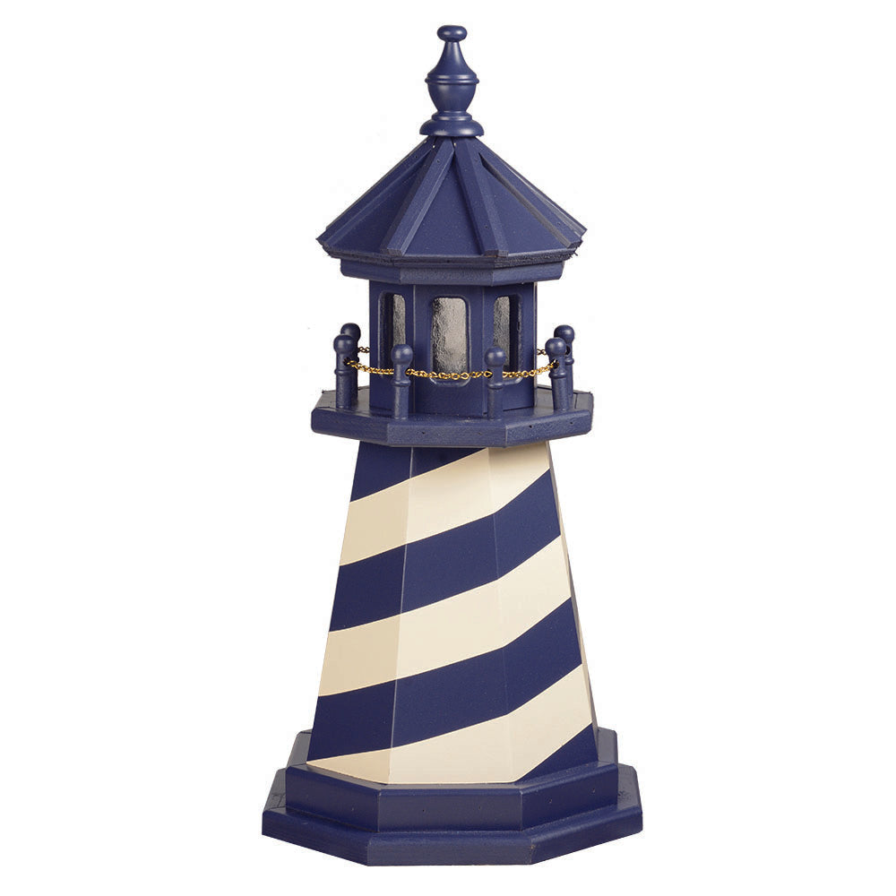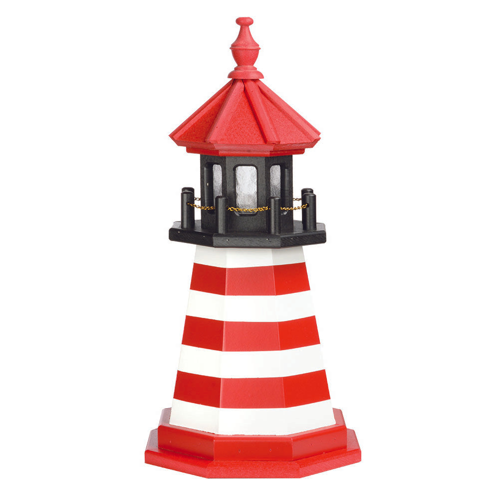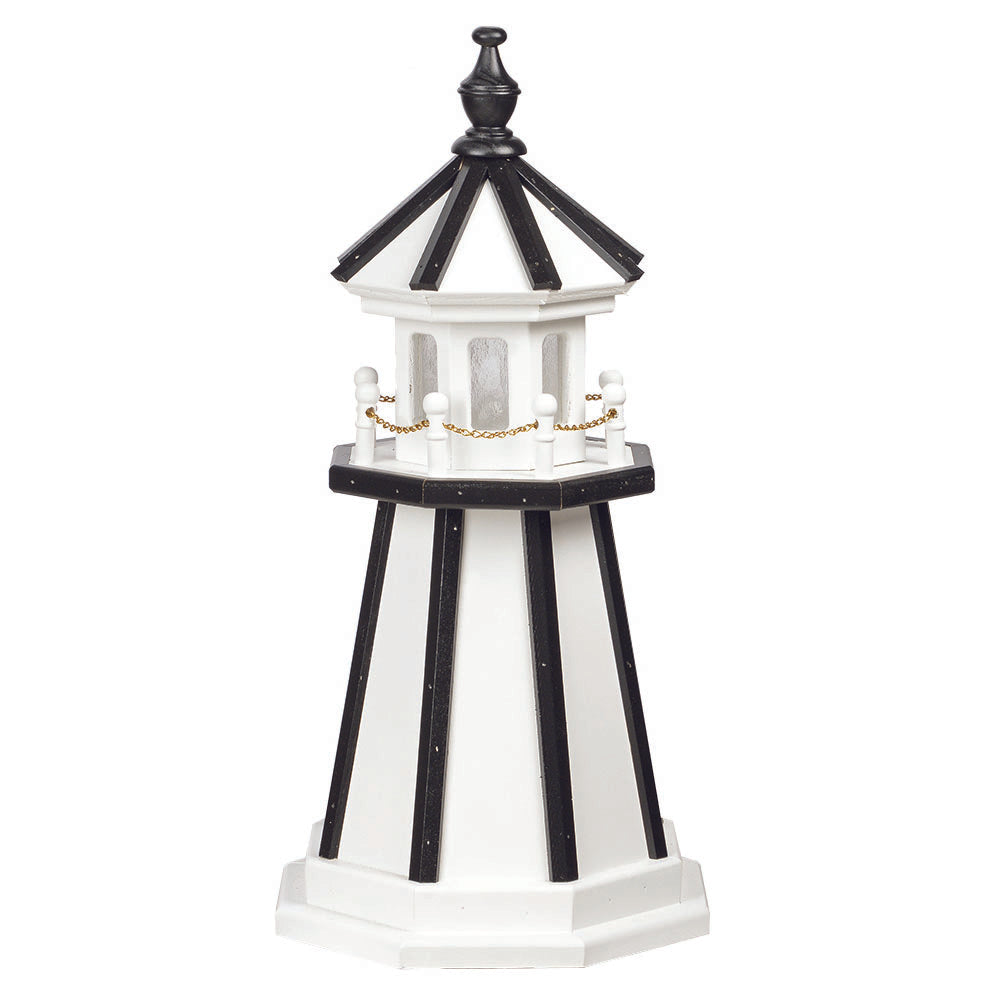 Amish 2' Wood Outdoor Decorative Lighthouse - Where it's Made: Lancaster, PAWhat it's Made Of: WoodShipping: Ships to all the lower 48 states!Assembly: Comes fully assembledExterior Size: 12"W x 24"H Interior Size: 8"W x 12"H