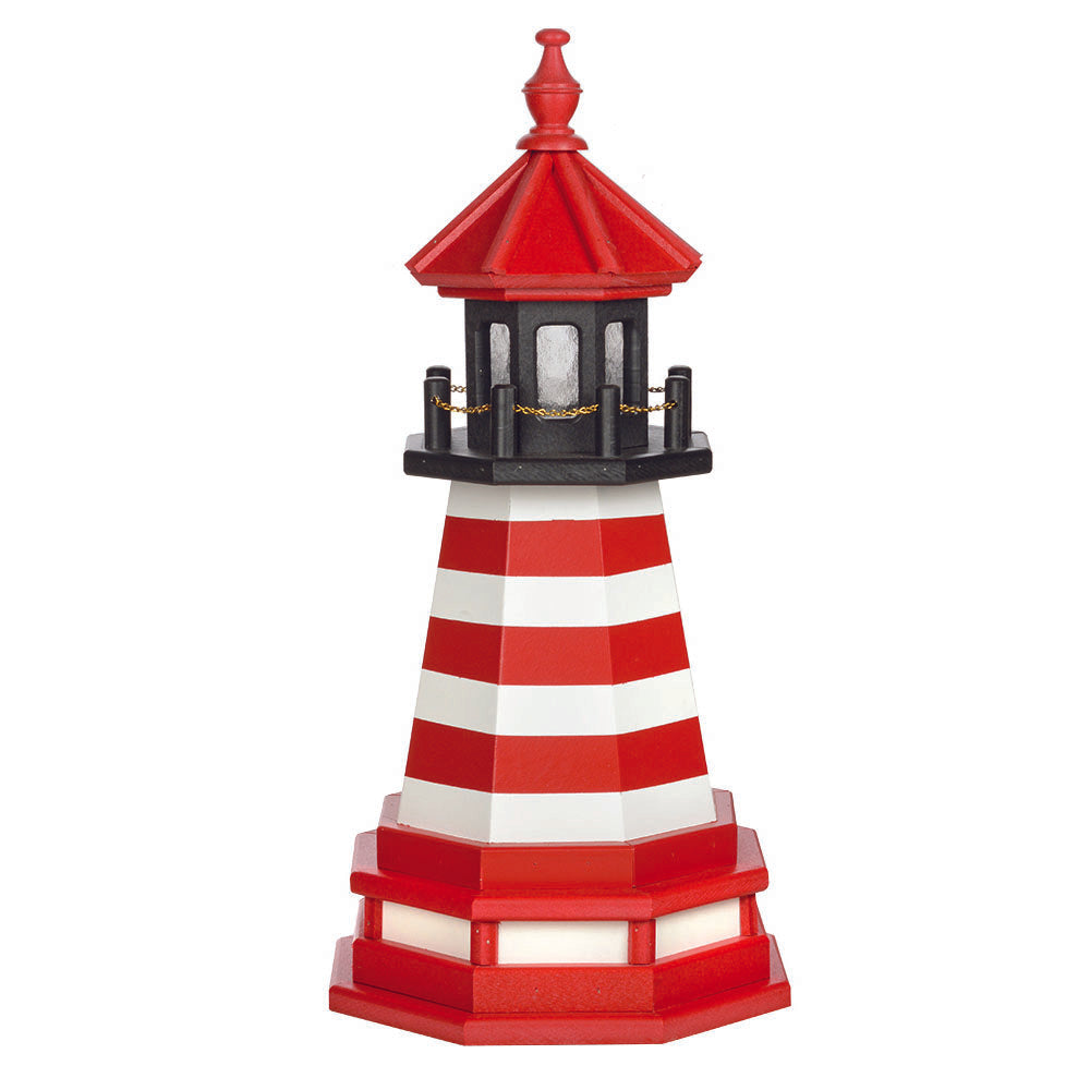 Amish 2' Poly Outdoor Decorative Lighthouse - Where it's Made: Lancaster, PAWhat it's Made Of: PolyShipping: Ships to all the lower 48 states!Assembly: Comes fully assembledExterior Size: 12"W x 24"H Interior Size: 8"W x 12"HBase Size: 13"W x 4"H (Overall 2'3"H)
