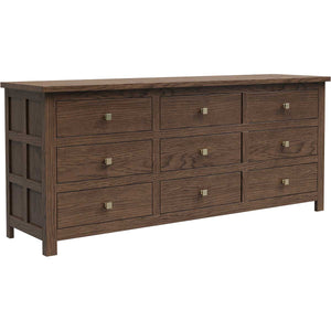 Amish Alto Solid Wood 84" 9 Drawer Dresser - Dimensions: 84″W x 22¼”D x 36″H Shown With:Wood: OakStain: CocoaHardware: 55273-BBZ Features:• Dovetailed drawers• Soft close full extension drawer slides Item Code: 2435