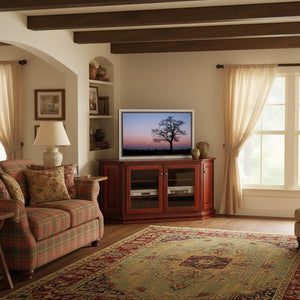 Amish 61" Canted Front TV Console - Dimensions: 61"W x 19"D x 30"H Features: • Two adjustable shelves behind each door Item Code: 271-F This design is available in the following size: 270-F: 61"W x 19"D x 23"H
