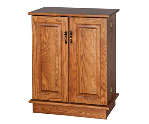 Amish CD/Media Storage Cabinet - Dimensions: 26"W x 17"D x 34"H Features: • Holds up to 205 DVDs Item Code: 216-V This design is available in the following size: 217-V: 26"W x 17"D x 52"H