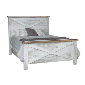 The Amish Conestoga Rustic Panel Bed Frame is handcrafted in Lancaster, PA out of reclaimed oak barnwood or rustic maple hardwood. Shown with the High Footboard Option.