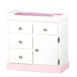 Nuestro cambiador de muñecas de madera tiene la altura perfecta para sus pequeños cuidadores. ¡El diseño realista seguramente los hará sentir como mamá y papá! Y se completa con un amplio espacio de almacenamiento para mantener la ropa y los suministros del bebé a mano y ordenados. Se adapta a muñecas de hasta 18 pulgadas.