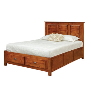 Características estándar Incluye rieles de cama, listones y soportes centrales (para tamaños Queen y King) *Amish hecho a mano en el condado de Lancaster, Pensilvania. *Barniz de conversión catalizada para una durabilidad excepcional. ¿Necesita un tamaño o acabado personalizado? Contáctenos para más información. 717-768-7642
