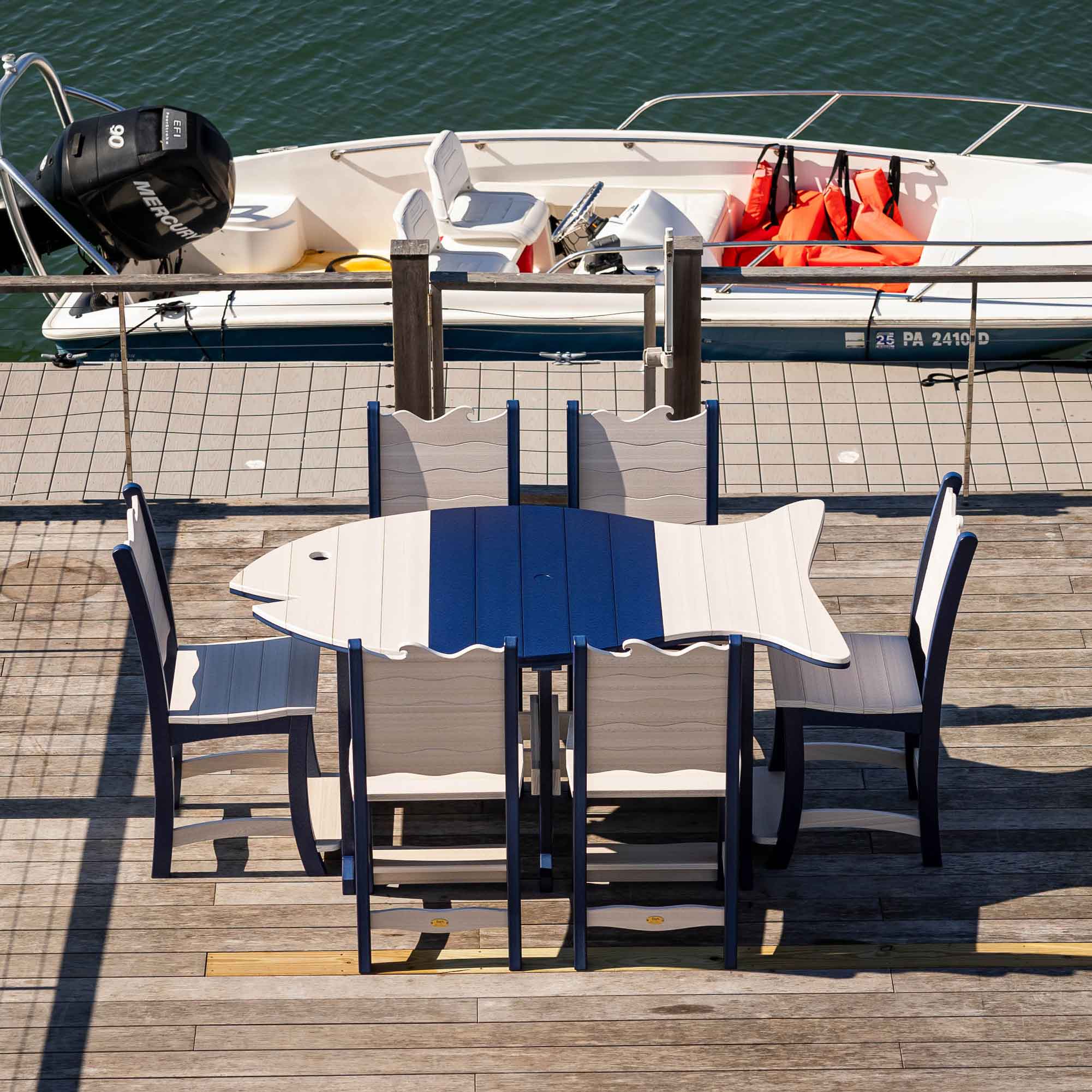 Amish Fish Shaped Poly Lumber Counter Table & Chair Set for 6