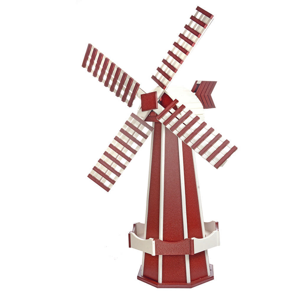 Amish Medium 41" poly Outdoor windmill - You can relax knowing this furniture will last! It comes with a 20-year warranty. It's made by hand by Amish craftsmen in Lancaster, Pennsylvania. They use earth-friendly materials made from recycled plastic and strong stainless steel screws for decades of enjoyment! Where it's Made: Lancaster, PAShipping: We ship to a