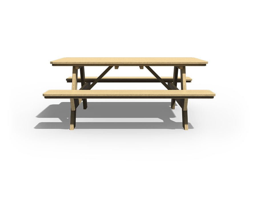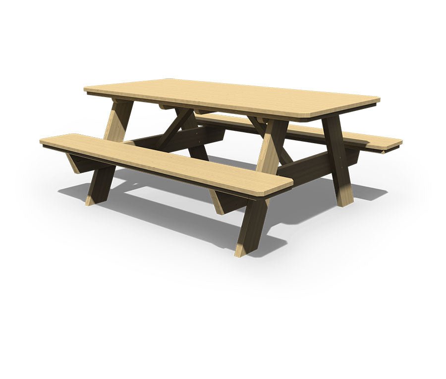 Mesa de picnic de madera de 3x6 | Mesas de picnic Amish Lancaster PA | Muebles de Snyder - Nuestra mesa de picnic de madera de 3' x 6' está construida con pino tratado a presión. Esta mesa de picnic con bancos adjuntos es excelente para parques, escuelas, iglesias y para reunir a su familia en el patio.