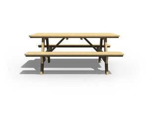 Nuestra mesa de picnic de madera de 3' x 6' está construida con pino tratado a presión. Esta mesa de picnic con bancos adjuntos es excelente para parques, escuelas, iglesias y para reunir a su familia en el patio.