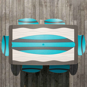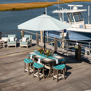 Our new Surfboard Counter Dining Set for your patio. Choose your base colors plus add a pop of color with our surfboard style tops. Includes the 72" Surfboard Counter (36"H) Table & 6 Wave Counter Height Saddle Stools