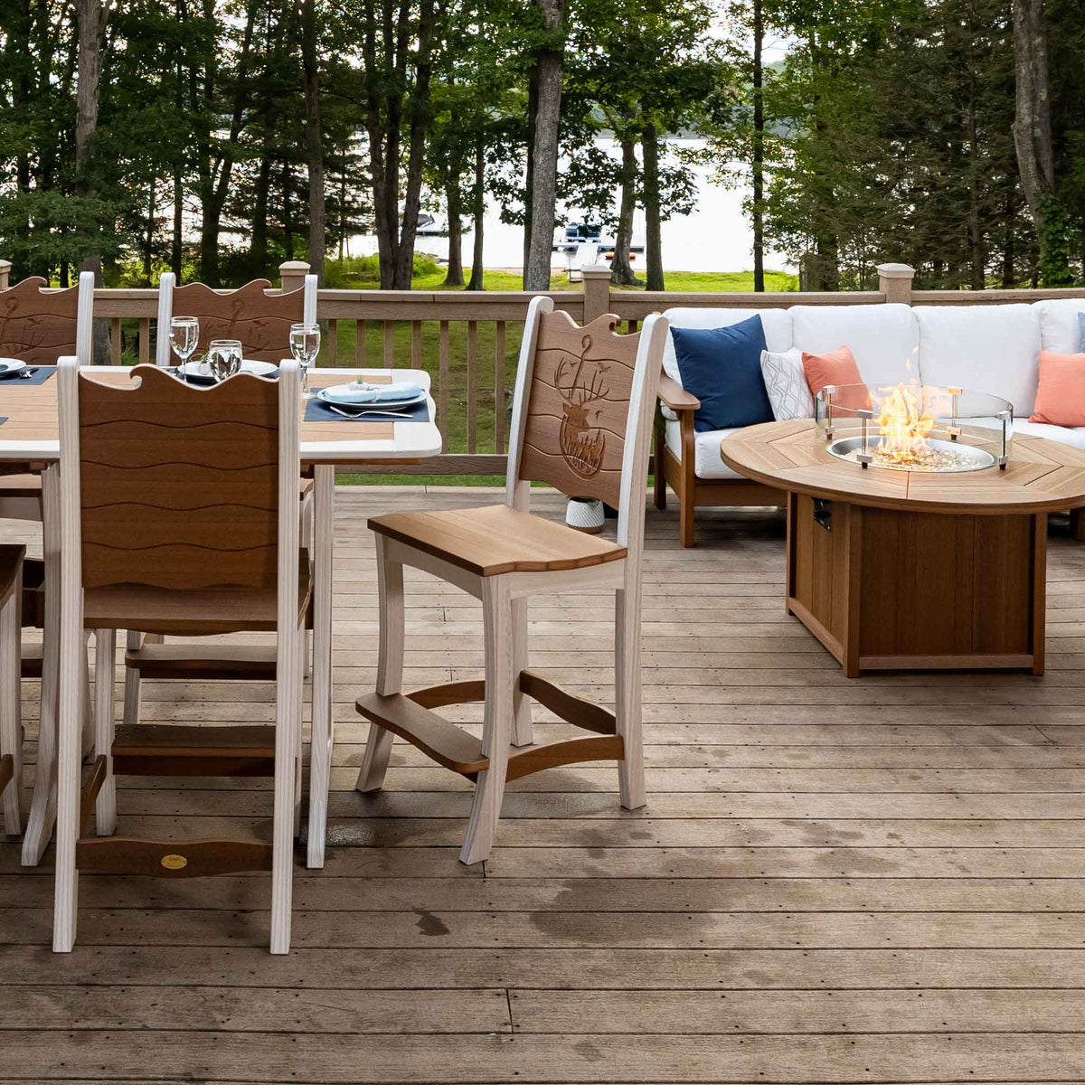 Silla de bar Amish Patio Poly Wave - Haz olas con la divertida y distintiva colección Wave. Las nuevas mesas y sillas Wave combinan la comodidad, calidad y durabilidad comprobadas de Finch con una nueva apariencia divertida diseñada para complementar sus espacios favoritos junto al agua. Los muebles en sí evocan vibraciones relajadas y relajadas mientras