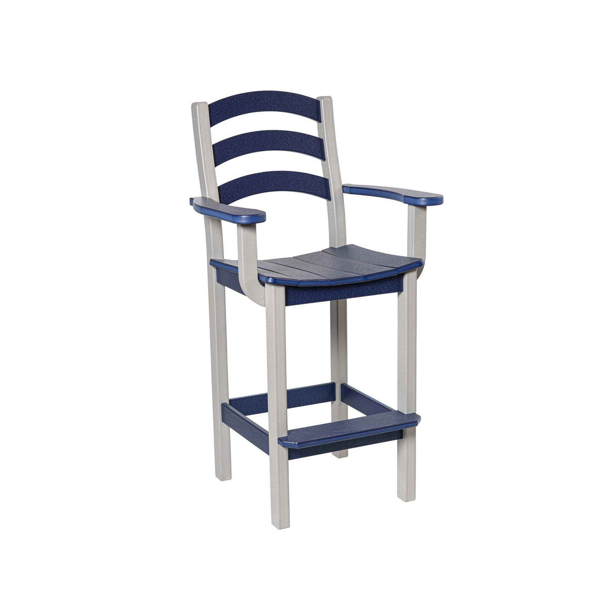Amish Poly Patio Long Beach Bar Chair with Arms - You can relax knowing this furniture will last! It comes with a 20-year warranty. It's made by hand by Amish craftsmen in Lancaster, Pennsylvania. They use earth-friendly materials made from recycled plastic and strong stainless steel screws for decades of enjoyment! Where it's Made: Lancaster, PAShipping: We ship to a