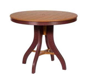 Mesa de patio redonda de poliéster Amish de 44" | Amish hecha a mano - Esta mesa redonda de poliéster para patio de 44" está hecha a mano localmente. Disponible en colores sólidos o en combinaciones de dos colores. Disponible en 3 alturas diferentes.