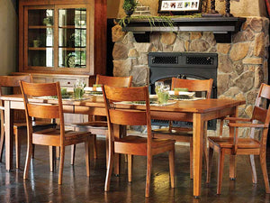 Mesa Charleston Amish de madera maciza - #20005 MESA Charleston Se muestra en cereza: 42" x 72" Características estándar: #30 arriba (#20005) Hojas de 18" de ancho Tablero de 1 1/2" de espesor El tablero termina en mesas y hojas. Zócalo de 3 1/2" de ancho #105 borde tobogán de madera sin engranaje hoja autoalmacenable Patas #1007 de 2 3/4" afligido acabado de