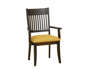 Silla de comedor Easton de madera maciza Amish - Se muestra con asientos de tela opcionales. #14630 Silla lateral Easton 19 3/4" ancho x 38 1/2" alto #14631 Sillón Easton 24 1/4" ancho x 38 1/2" alto Características estándar: Asientos de madera de 1 1/4" de profundidad Opciones: asientos de tela $ asientos de cuero $