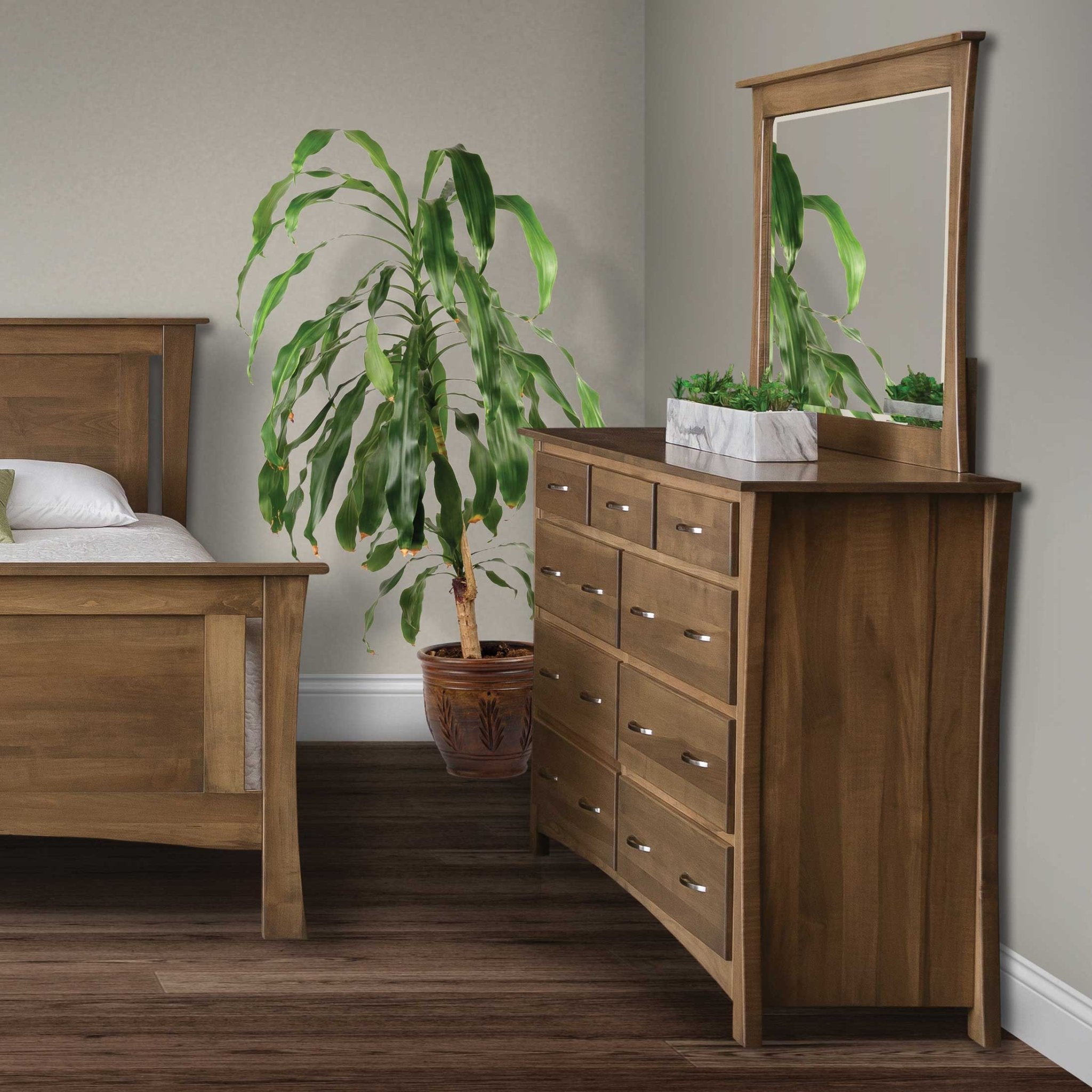 Our solid wood furniture is handcrafted by skilled Amish and Mennonite craftsmen using traditional methods passed down through generations. Each piece is made from high-quality, sustainably sourced wood and finished with a water-resistant catalyzed conversion varnish for enhanced protection. This varnish provides a durable, silky-smooth finish that resists moisture, stains, and daily wear, ensuring your furniture will stand the test of time. The craftsmanship and attention to detail result in timeless, heirloom-quality furniture for your home.