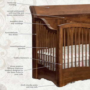• Cribs are built with sturdy mortise and tenon construction designed for years of use.