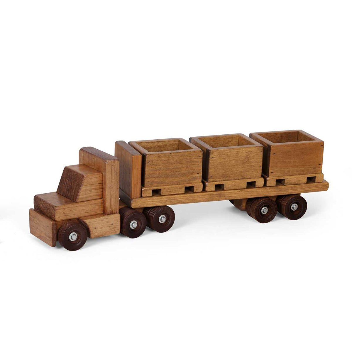 Camión de madera con remolque deslizante | Lancaster PA | Muebles de Snyder - ¿Listo para empezar a trabajar? Les encantará toda la acción que trae este set. Mueva los patines hacia arriba y hacia abajo utilizando nuestra carretilla elevadora. Luego cárguelos en nuestro remolque de madera antes de que pequeñas manos ocupadas los lleven a su destino.