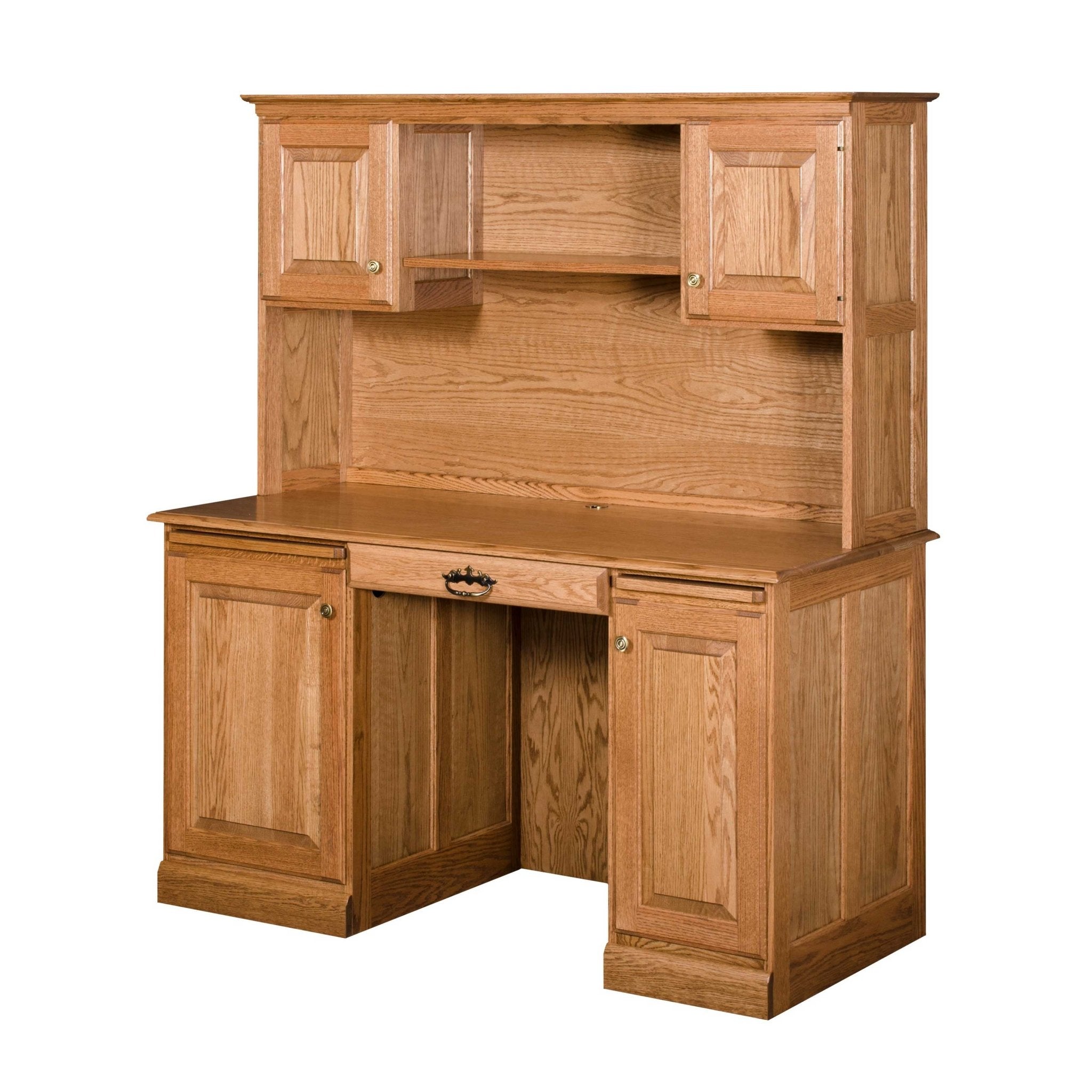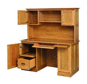Este escritorio para computadora está disponible en roble, arce y cerezo. Se muestra en Roble - Provencial con herrajes AE. Cuenta con archivadores y bandejas extraíbles. Personalízalo según tus especificaciones. Disponible con techos enrollables o tipo aparador.
