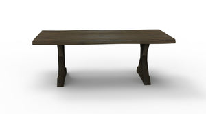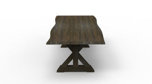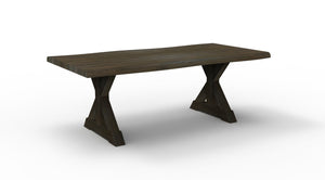 Mesa de comedor Bartholomew de teca de 84" con borde vivo - Natural + - Producto exclusivo Carolina Live Edge. Llegando en marzo de 2024. Fabricado con tablones de teca maciza con borde vivo natural. Base de caballete en X hecha a mano de teca maciza con camilla. Dimensiones: 84" de largo x 42" de ancho x 30" de alto.