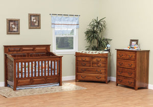 ¡Es una cuna! ¡Es una cama para niños pequeños! ¡Es un diván! ¡Es una cama de tamaño completo! Por fin, una cama con la que su hijo pueda crecer en lugar de quedarse sin ella. ¡Nuestra cuna Amish convertible 4 en 1 es perfecta! Cuidadosamente hecho a mano en pequeñas carpinterías Amish en Lancaster, PA, con maderas duras macizas; Esta colección está diseñada para durar toda la vida. Todo cumple y supera las normas federales de seguridad más recientes, lo que le brinda la tranquilidad de saber que su hijo está seguro. Fácil montaje Tamaño de colchón estándar de la industria Altura del colchón ajustable Calidad Amish confiable: construida para durar La conversión es sencilla y se puede comprar más tarde. Respetuoso con el medio ambiente - construcción local - materiales limpios Nuestras cunas Amish están disponibles en maderas de roble, arce y cerezo. Elija una mancha o pintura única. Cada pieza está cuidadosamente hecha a mano bajo pedido. El acabado tiene bajo contenido de COV y está certificado como seguro para niños. El montaje es muy sencillo. La mayoría de las cunas vienen en 5 piezas o menos. Pregunte por nuestro servicio de entrega con guantes blancos y haga que un profesional instale su cuna.