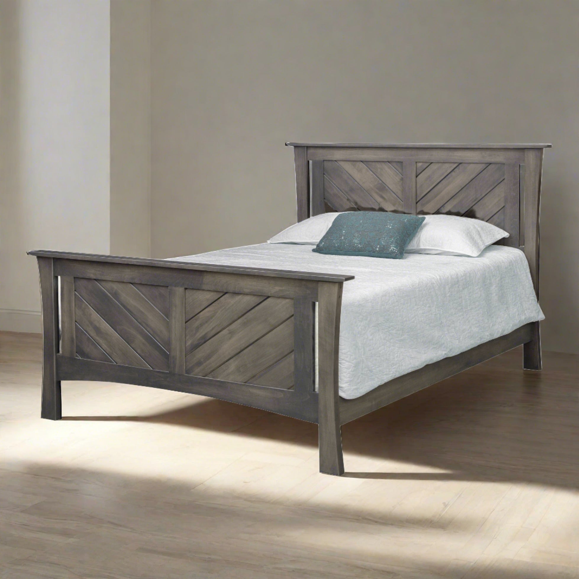 Cama amish moderna de madera maciza con panel ranurado