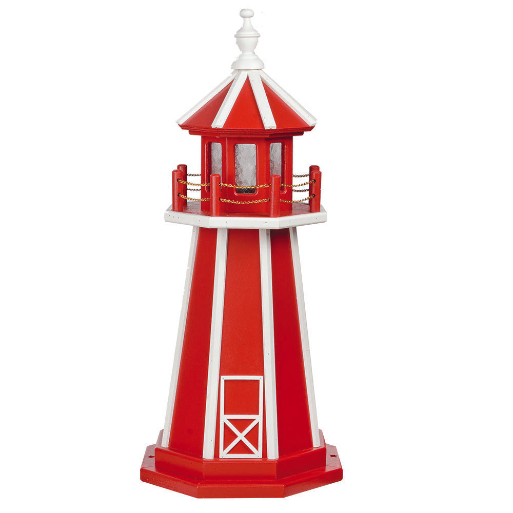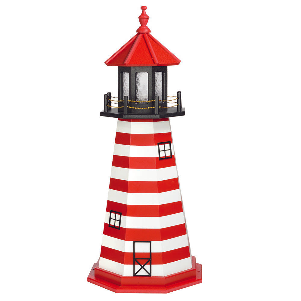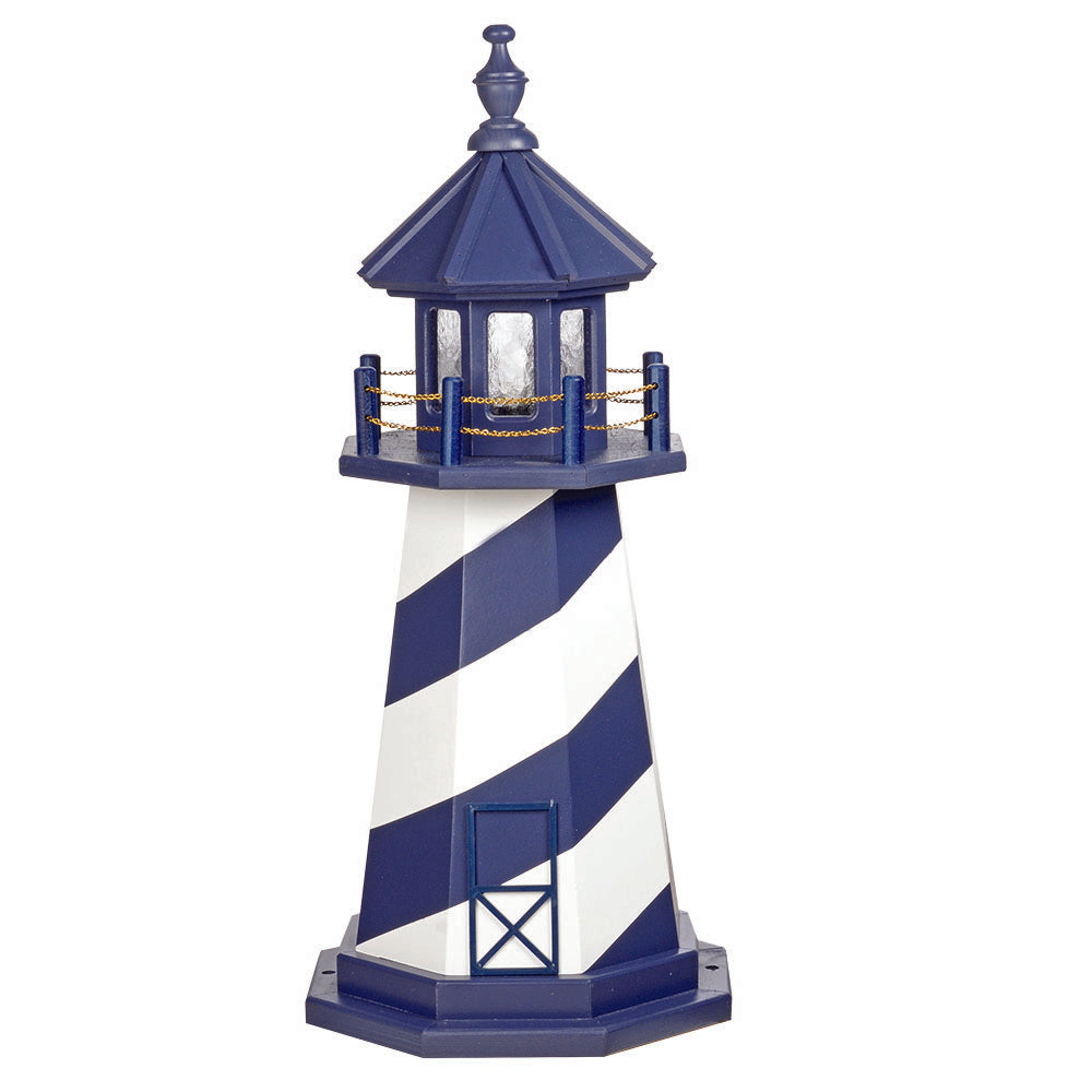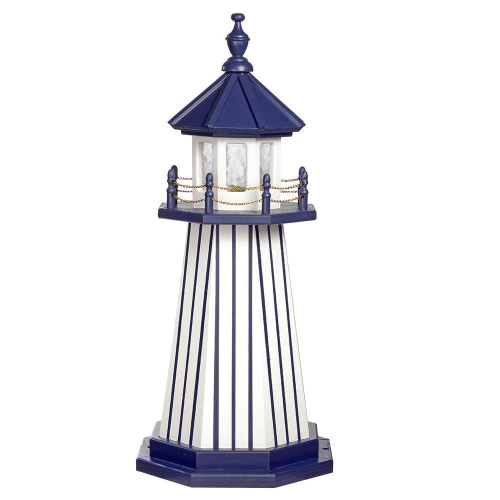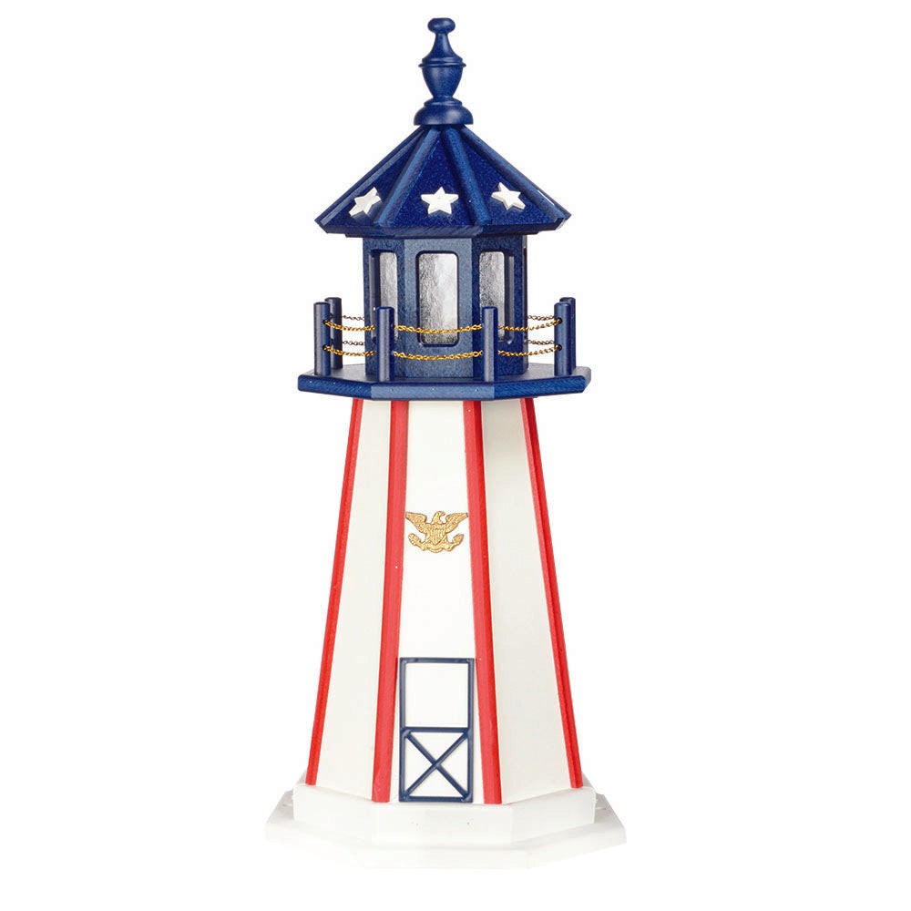 Amish 3' Wood Outdoor Decorative Lighthouse - Where it's Made: Lancaster, PAWhat it's Made Of: WoodShipping: Ships to all the lower 48 states!Assembly: Comes fully assembledExterior Size: 15.5"W x 36"H Interior Size: 10"W x 19"H