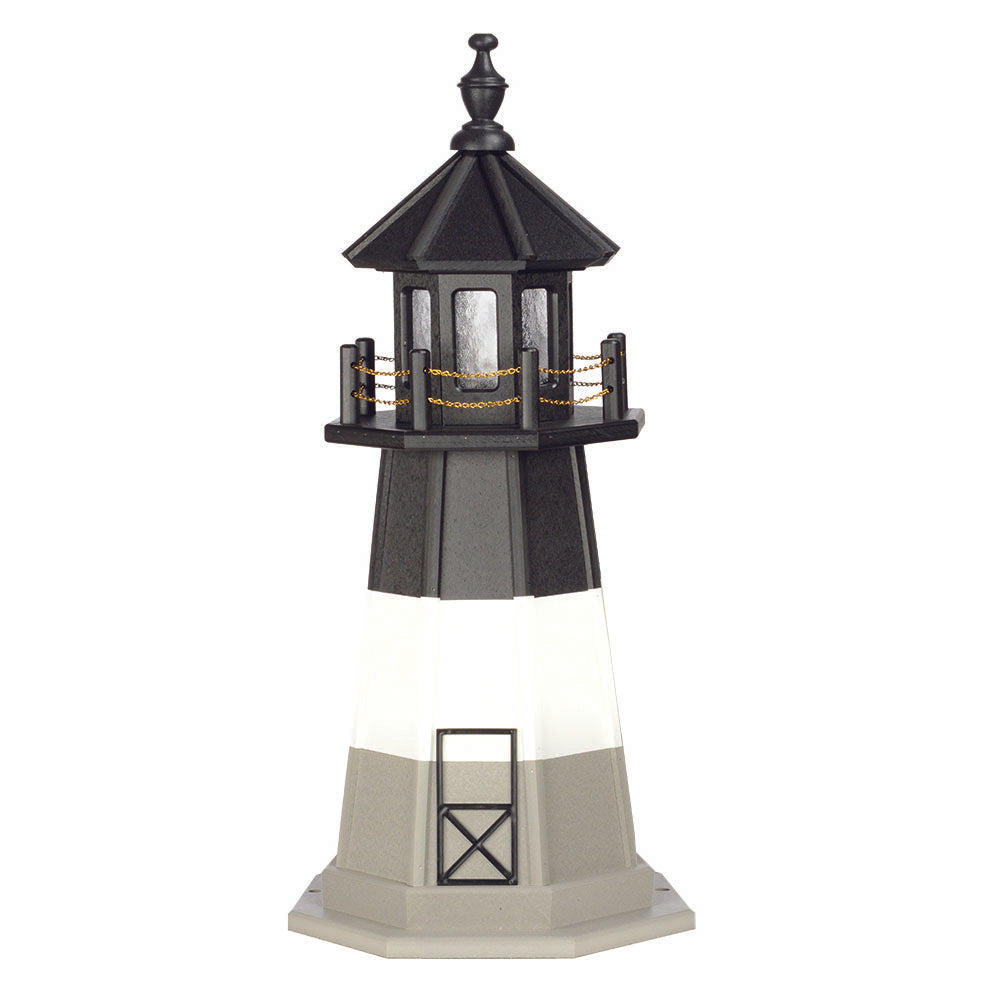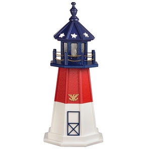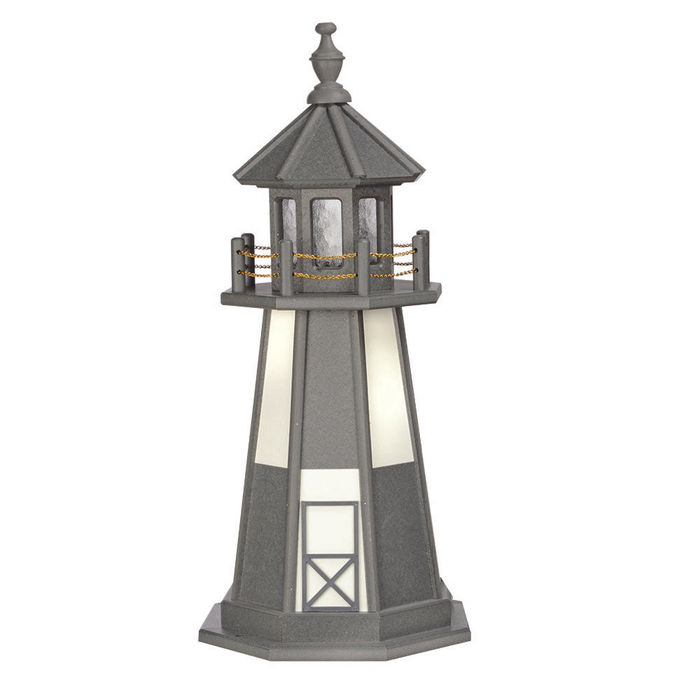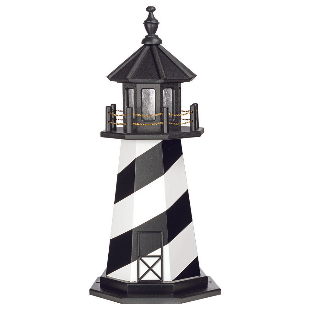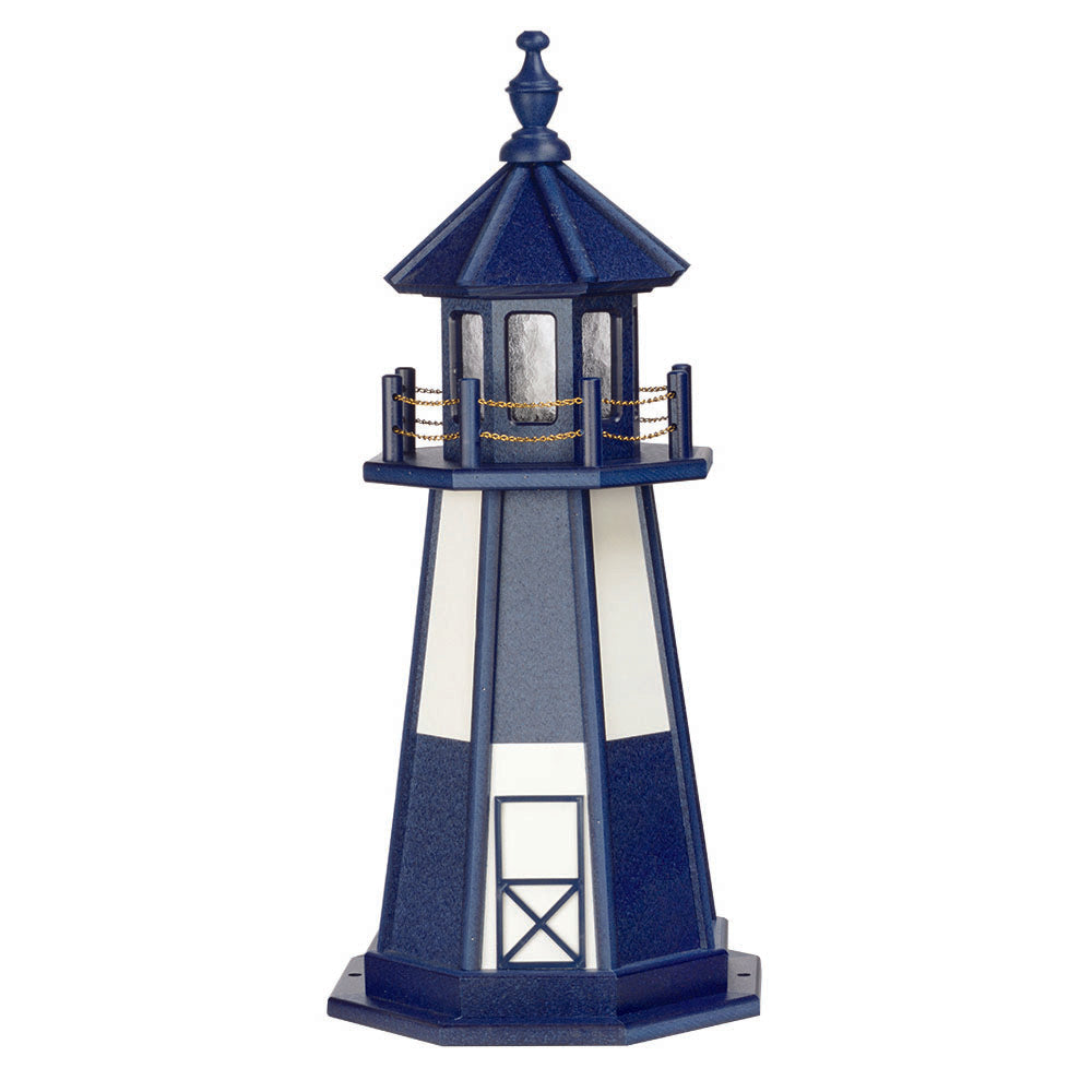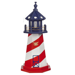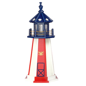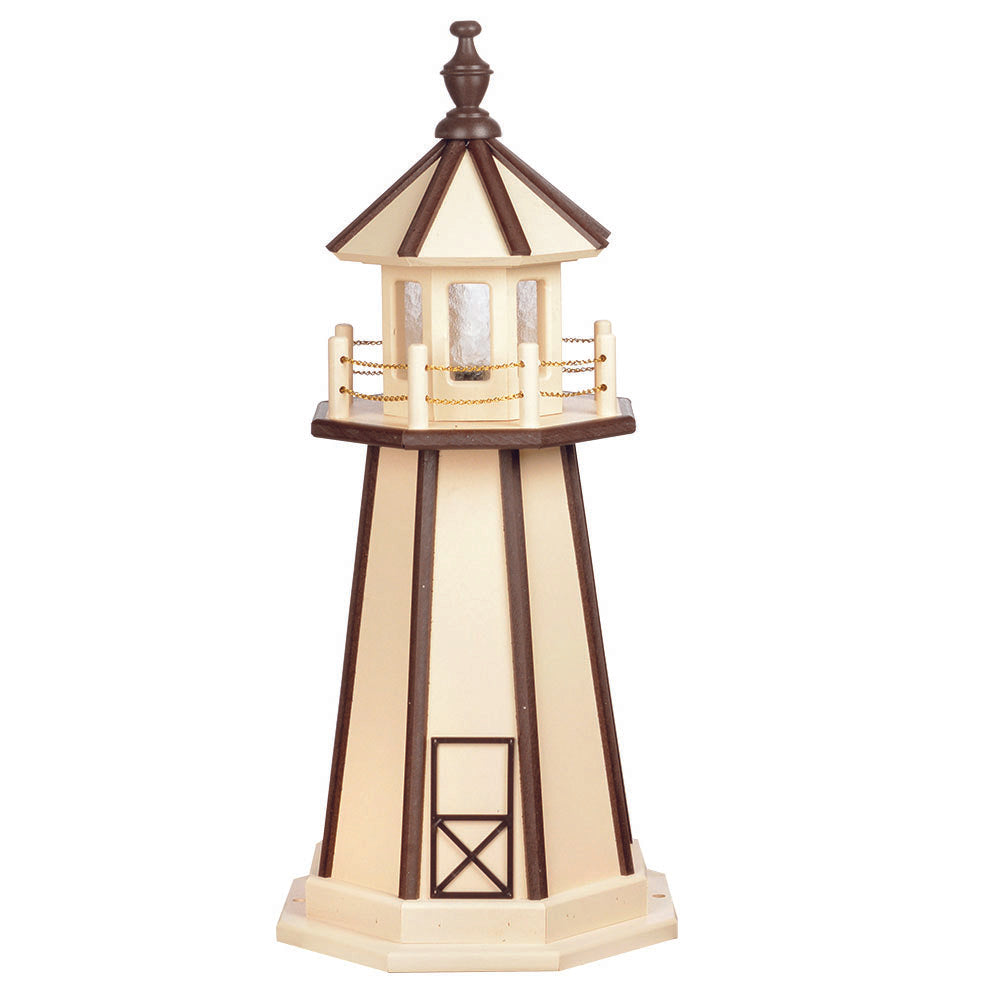 Amish 3' Wood Outdoor Decorative Lighthouse - Where it's Made: Lancaster, PAWhat it's Made Of: WoodShipping: Ships to all the lower 48 states!Assembly: Comes fully assembledExterior Size: 15.5"W x 36"H Interior Size: 10"W x 19"H