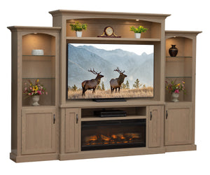 Amish 3pc Entertainment Center with Side Towers and Electric Fireplace