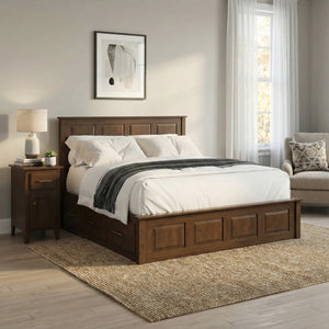 Amish Bel Air Solid Wood High Panel Drawer Storage Platform Bed
