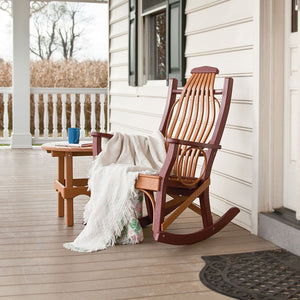 Amish Bentwood Poly Hickory Porch Rocker - Relax and unwind in our Amish Bentwood Poly Rocker. You can also feel at ease knowing the low-maintenance eco-friendly rocker is weather-resistant and will keep its color over time. 26-1/2"w x 40-1/2'h x 26"dHandcrafted LocallyAvailable in solid color or two color combinationsView ColorsMain Color: Seat & BackAccen